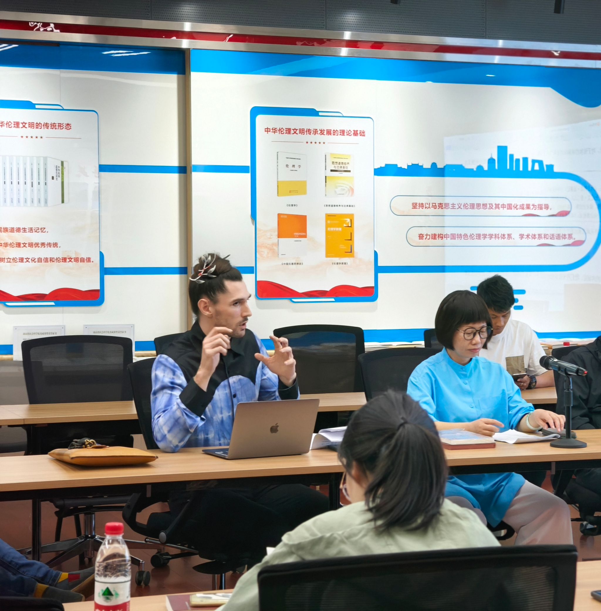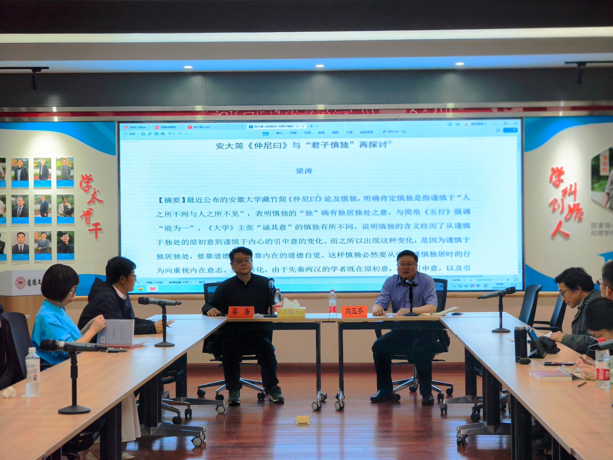 2024年3月31日晚7点,由湖南师范大学中华伦理文明研究中心、湖南师范大学哲学系主办的岳麓道德文化论坛·景德论坛系列的学术报告在景德大讲堂成功举办。此次报告邀请了教育部“长江学者”特聘教授、中国人民大学杰出学者梁涛教授。梁涛教授做了题为“安大简《仲尼曰》与‘君子慎独’再探讨”的精彩讲座。湖南师范大学道德文化研究院院长、哲学系主任向玉乔教授主持了本场讲座。湖南师范大学哲学系部分老师和学生参加了此次讲座。