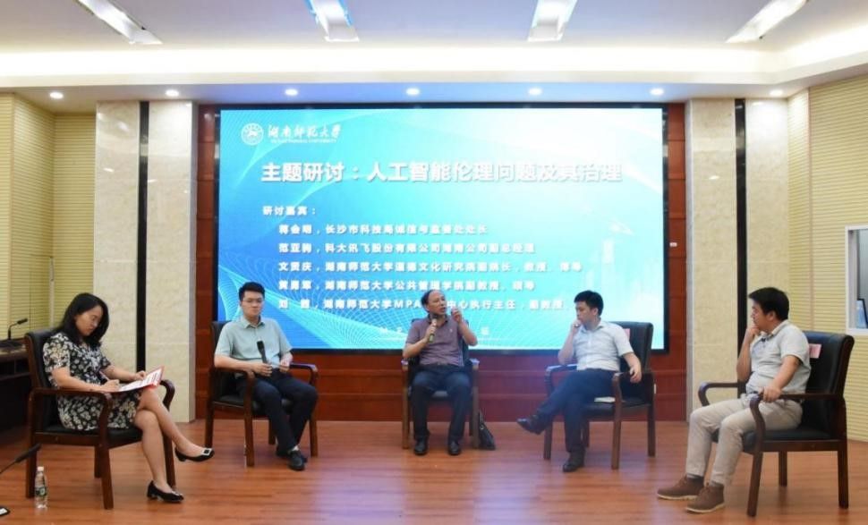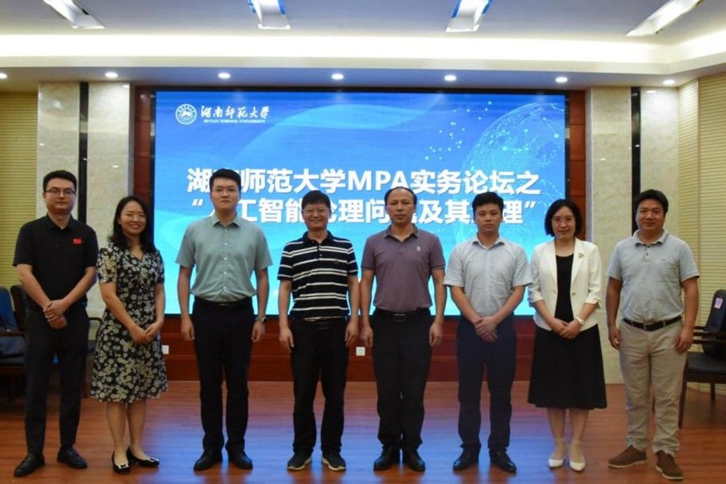 (通讯员范彦琳)5月25日上午,湖南师范大学MPA实务论坛之“人工智能伦理问题及其治理”于景德楼南栋四楼学术报告厅隆重举行。本次论坛特别邀请了长沙市科技局诚信与监督处处长蒋会明、科大讯飞股份有限公司湖南公司副总经理范亚驹。中共湖南省委党校公共管理教研部主任李礼教授、湖南师范大学公共管理学院院长毛新志教授、道德文化研究院副院长文贤庆教授、MPA教育中心执行主任刘茜副教授、黄勇军副教授、金玉老师、蘧垣志老师以及全体MPA学生、部分研究生与本科生参加讨论。本次论坛由刘茜副教授主持,论坛通过嘉宾分享、主题研讨等形式,围绕人工智能伦理问题及其治理进行了主题分享与深入探讨。