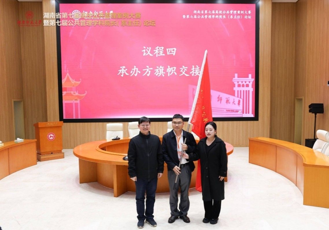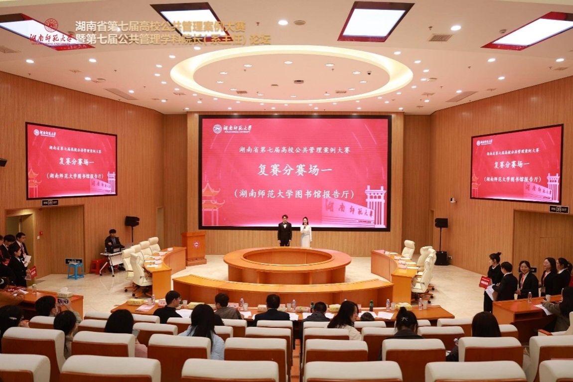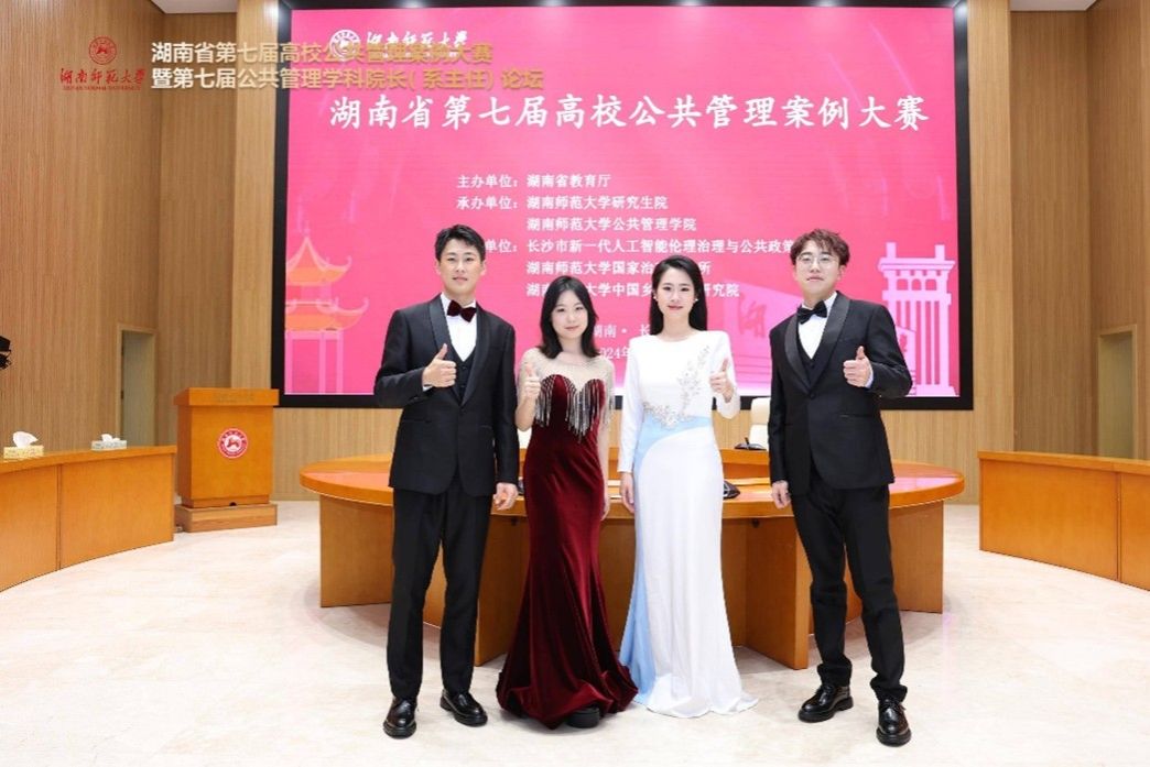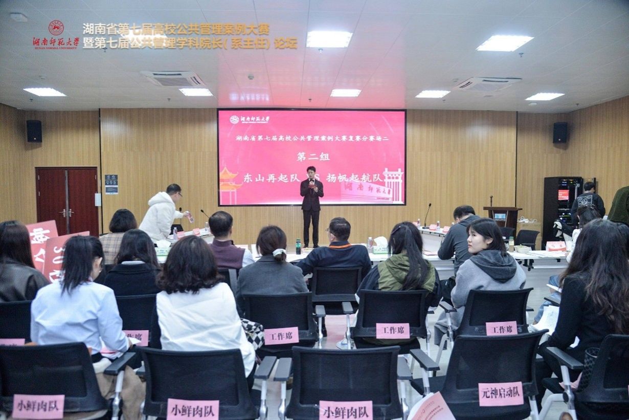 (通讯员:程中培 覃健 朱孝源)2024年11月23日-24日,湖南省第七届高校公共管理案例大赛暨第七届公共管理学科院长(系主任)论坛在湖南师范大学圆满举行。此次大赛由湖南省教育厅主办,湖南师范大学研究生院和湖南师范大学公共管理学院承办,长沙新一代人工智能伦理治理与公共政策实验室、湖南师范大学国家治理研究所、湖南师范大学中国乡村振兴研究院协办。