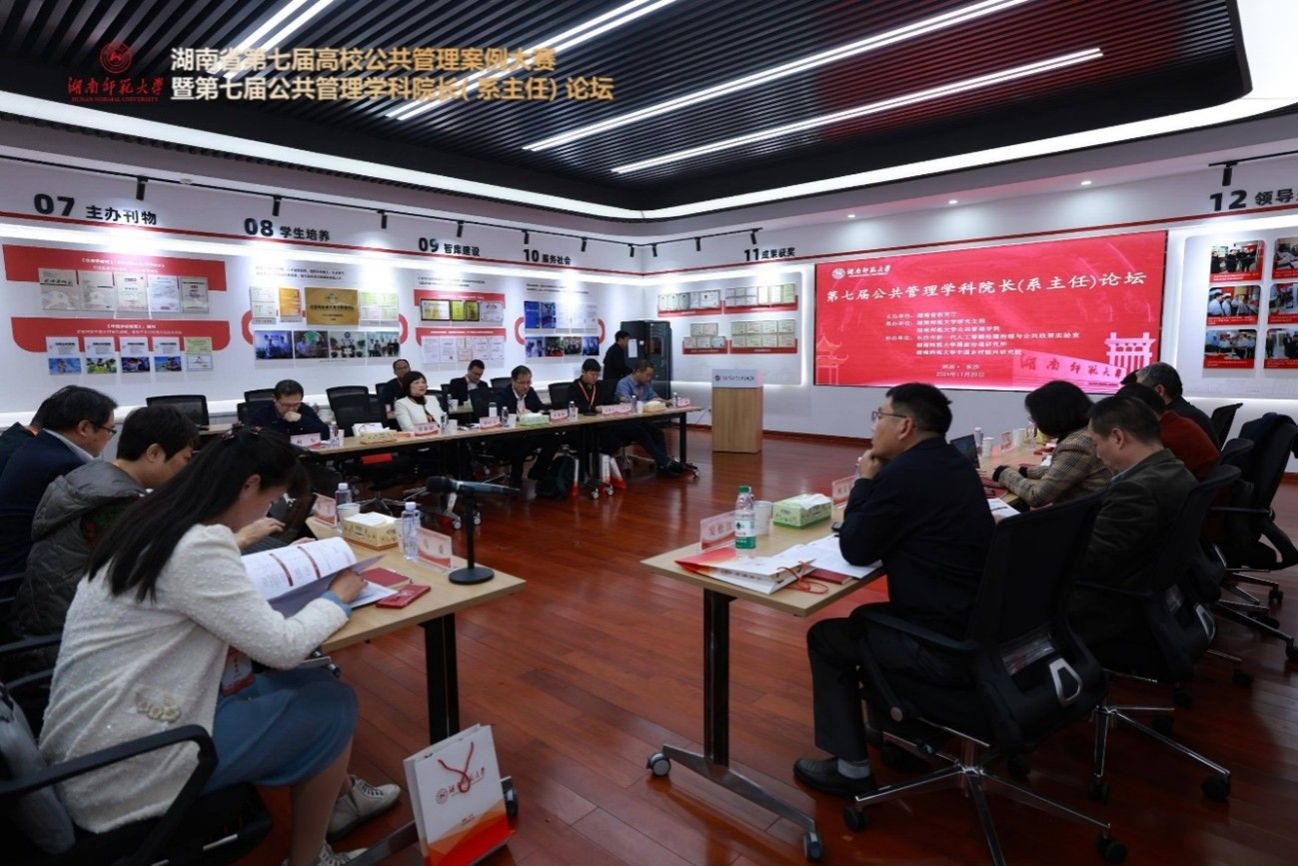 11月23日下午,湖南省第七届公共管理学科院长(系主任)论坛成功举办。论坛由湖南师范大学公共管理学院院长毛新志教授和副院长王敏教授主持,郑耀东副会长、孙萍教授、米加宁教授、马桑教授、许源源教授、谭海波教授、梁丽芝教授、李礼教授等来自省内外高校的院长和知名教授,针对人工智能时代下的公共管理研究、案例建设与人才培养、湖南省高校公共管理学科发展等议题进行了充分研讨。