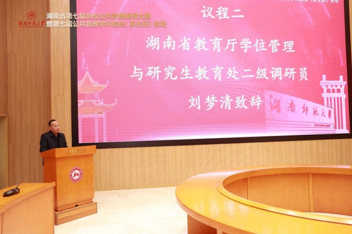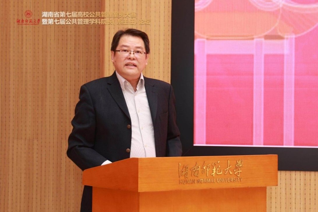 11月24日上午,湖南省第七届高校公共管理案例大赛暨第七届公共管理学科院长(系主任)论坛顺利闭幕,湖南师范大学公共管理学院院长毛新志教授主持闭幕式。