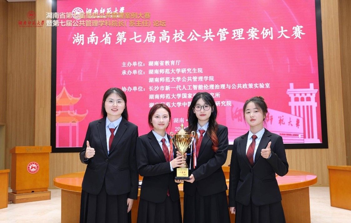 湖南师范大学公共管理学院2022级和2023级硕士研究生姜淑新、黄雁冰、周诗音、胡立敏四位同学组成的“四头八臂队”,从决赛上脱颖而出,荣获大赛一等奖;揭梦霜、陈紫琪、王文彬、李丽四位同学组成的“干就完了队”、陈荃、仪如、房小霜、段厚宇四位同学组成的“比完开派对”以及徐梦星、姚璐、陈思迷、何荣四位同学组成的“我说对就队”荣获大赛三等奖;刘茜老师荣获优秀指导教师奖;黄雁冰同学荣获最有价值队员奖;我校荣获优秀组织单位奖。