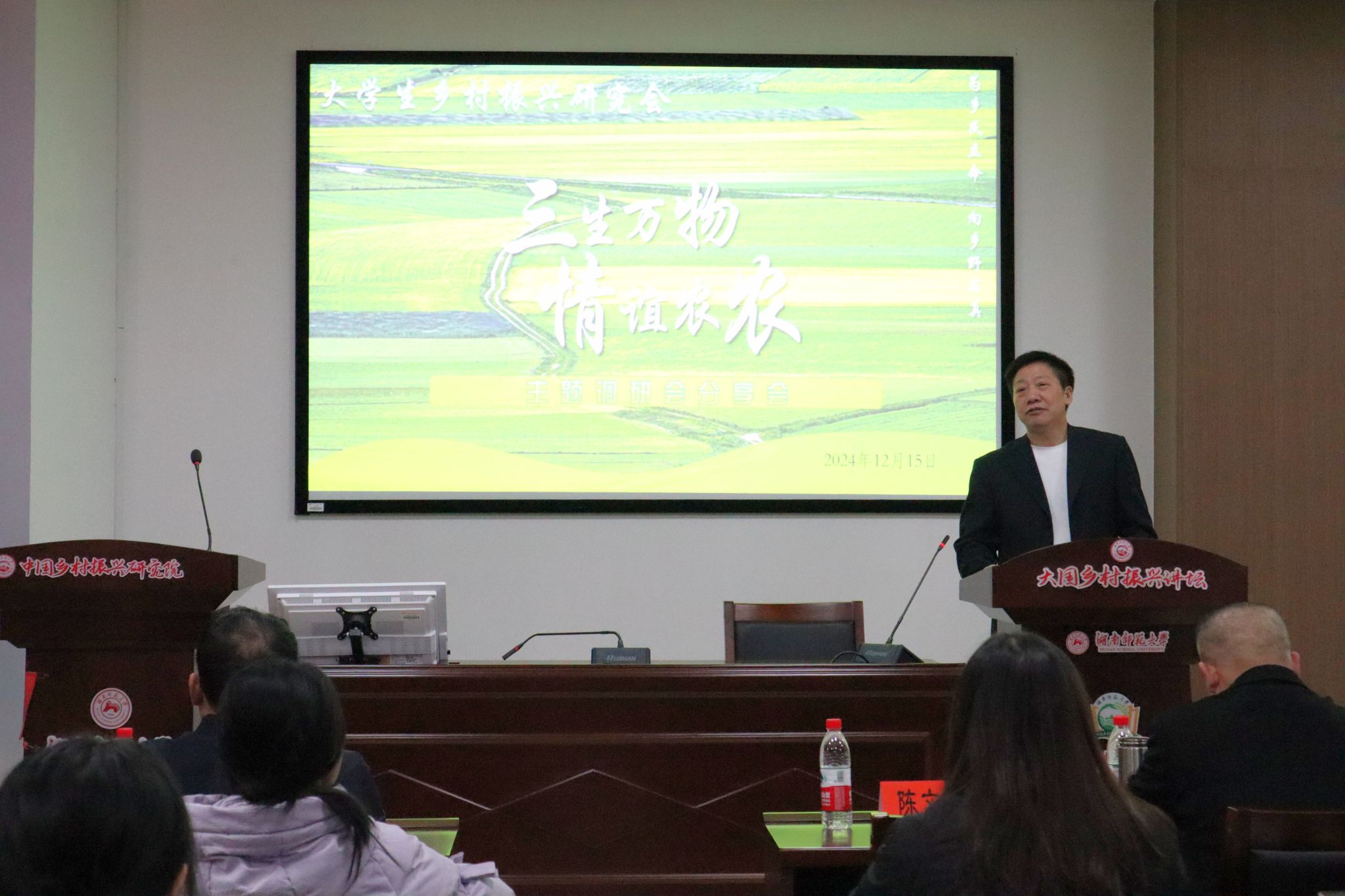 (通讯员 张惟斌 付春利 留晨涵)为深入学习乡村振兴战略,鼓励大学生深入乡村开展调研,激发大学生服务乡村、奉献社会的责任感和使命感,12月15日上午,公共管理学院大学生乡村振兴研究会(以下简称“乡研会”)在里仁楼学术报告厅举办“三生万物,情谊农农”主题调研分享会。湖南师范大学中国乡村振兴研究院院长陈文胜,教授陆福兴、胡扬名,副教授瞿理铜,讲师谢宗藩以及乡研会部分会员参加此次活动。
