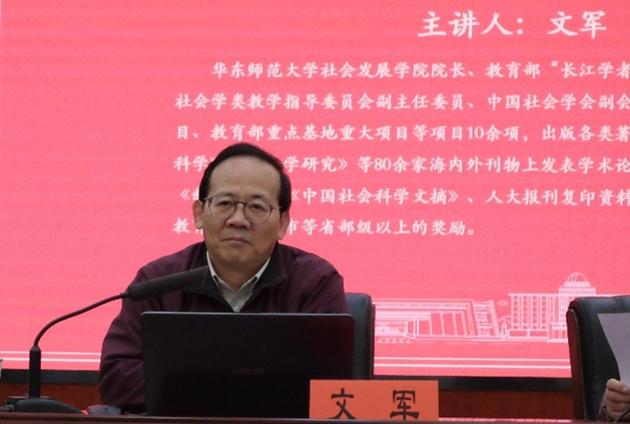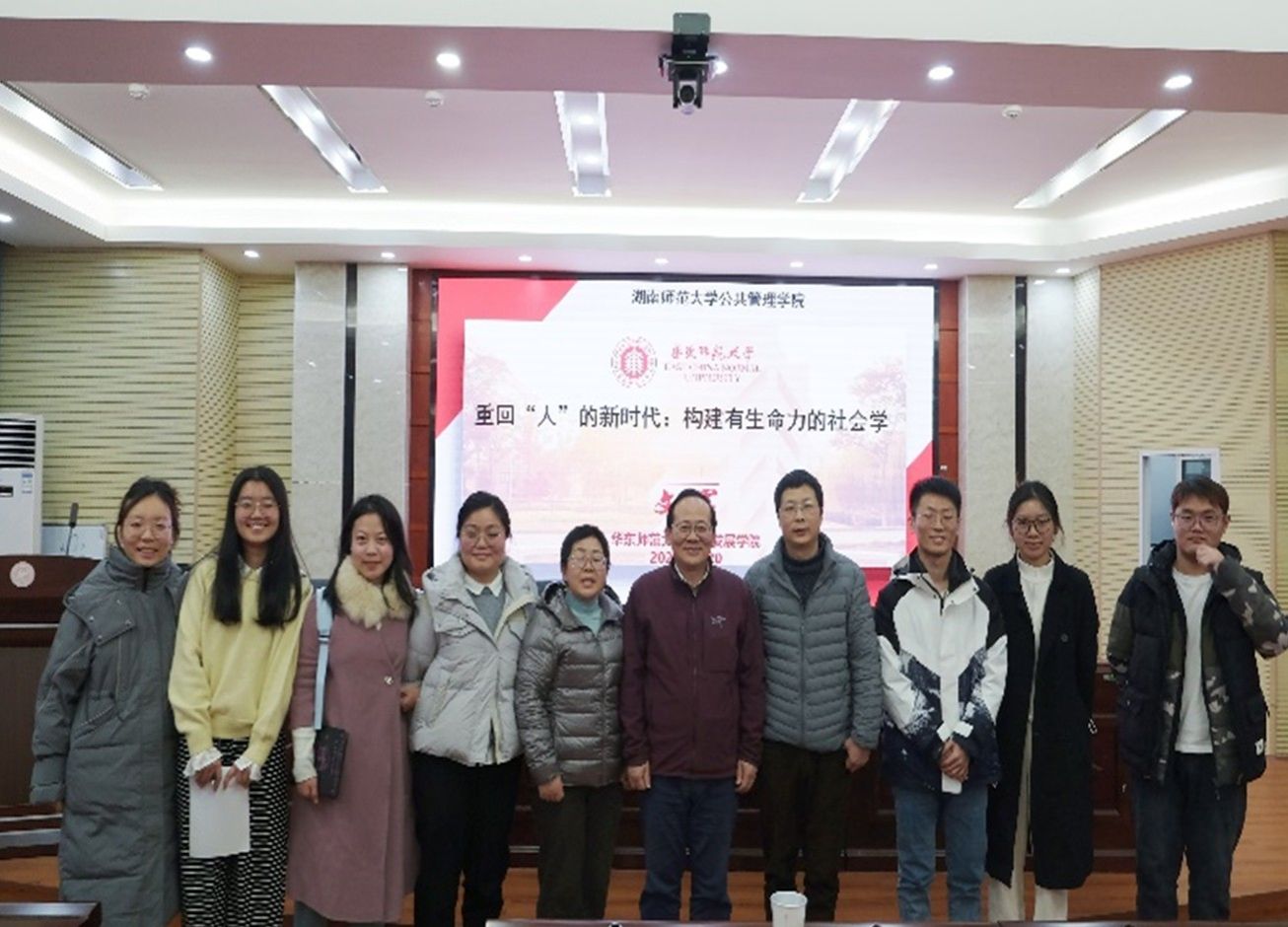 (通讯员 揭梦霜)12月20日下午,华东师范大学文军教授应湖南师范大学公共管理学院社会学系邀请,在博后楼402报告厅进作了题为“重回‘人’的新时代:建构有生命力的社会学”的学术讲座。本次讲座由社会学系赵玉燕副教授主持,学院部分教师及相关专业研究生和本科生近百人参加。