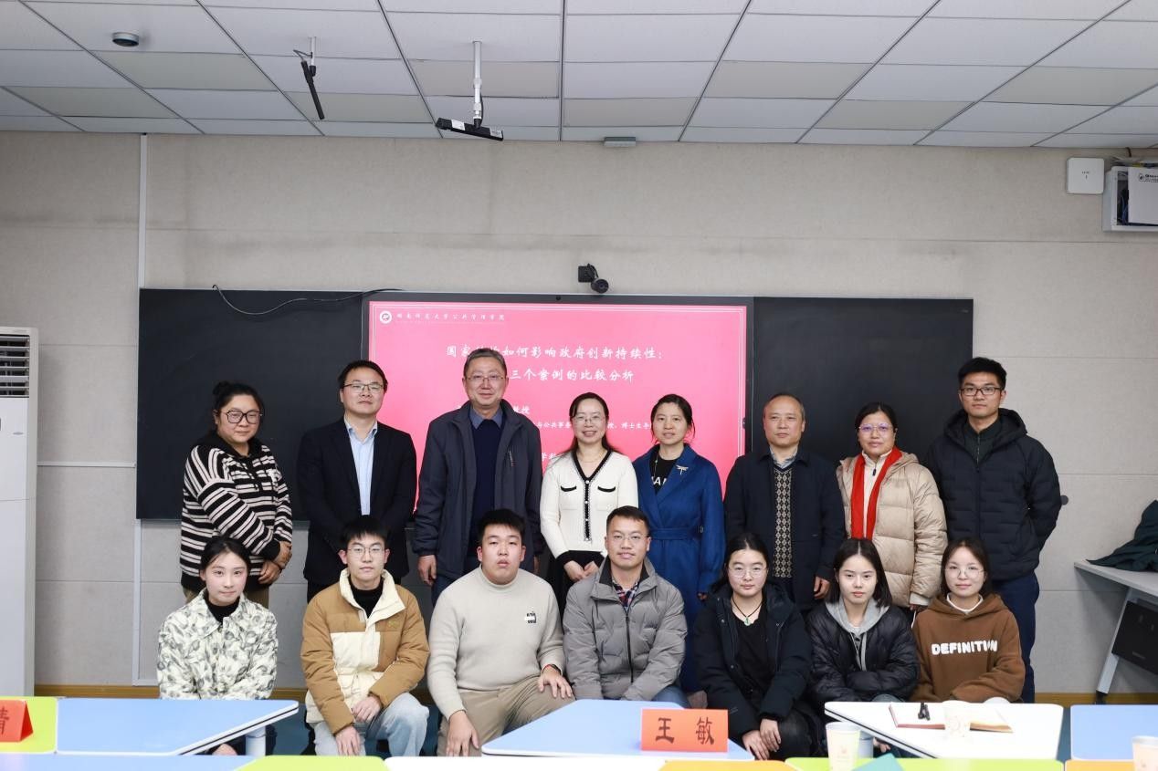 (通讯员颜青)12月21日下午,中山大学政治与公共事务管理学院教授、博士生导师、院长助理、逸仙学者王清教授在公管院209智慧教室进行了主题为“国家结构如何影响政府创新持续性:基于三个案例的比较分析”的学术讲座。讲座由政治学一级学科博士点主办,公共管理学院副院长王敏教授主持。湖南师范大学陈婧教授、胡守勇教授、付振奇副教授、袁青副教授、彭小玲博士等教师以及公管院部分硕博研究生参与了本次讲座。