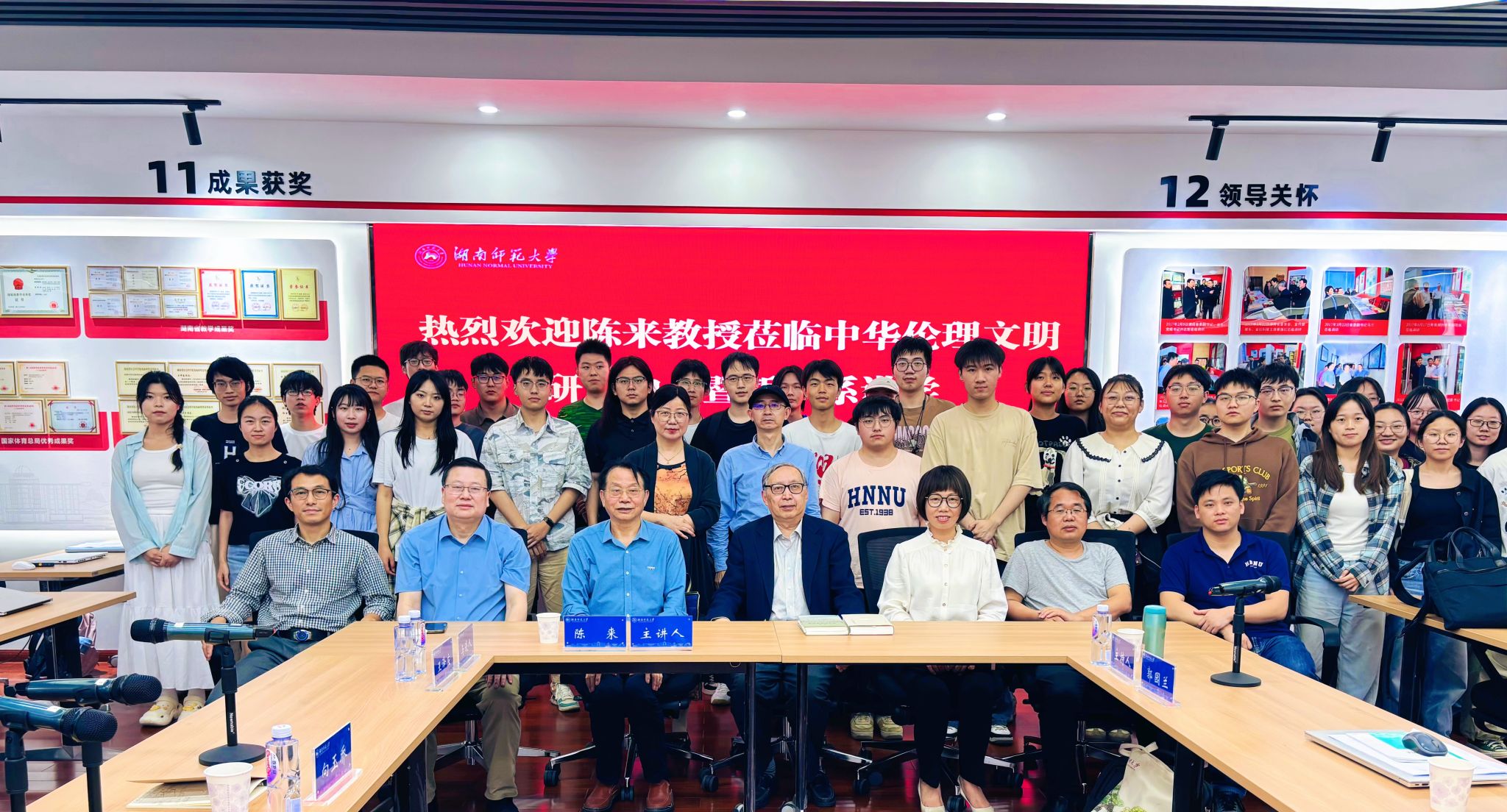(通讯员 吴俊良 曾浩楠)近日,清华大学文科资深教授、国学研究院院长陈来先生莅临我院讲学,在景德大讲堂做了题为“朱子论羞恶”的精彩讲座。该讲座由湖南师范大学中华伦理文明研究中心、公共管理学院哲学系共同主办。道德文化研究院原院长王泽应教授参加与谈,湖南师范大学中华伦理文明研究中心主任、道德文化研究院院长兼哲学系主任向玉乔教授、道德文化研究院副院长文贤庆教授、中国哲学教研室主任肖平副教授等全程聆听了讲座,我院哲学系博士生导师郭园兰教授主持本场讲座。