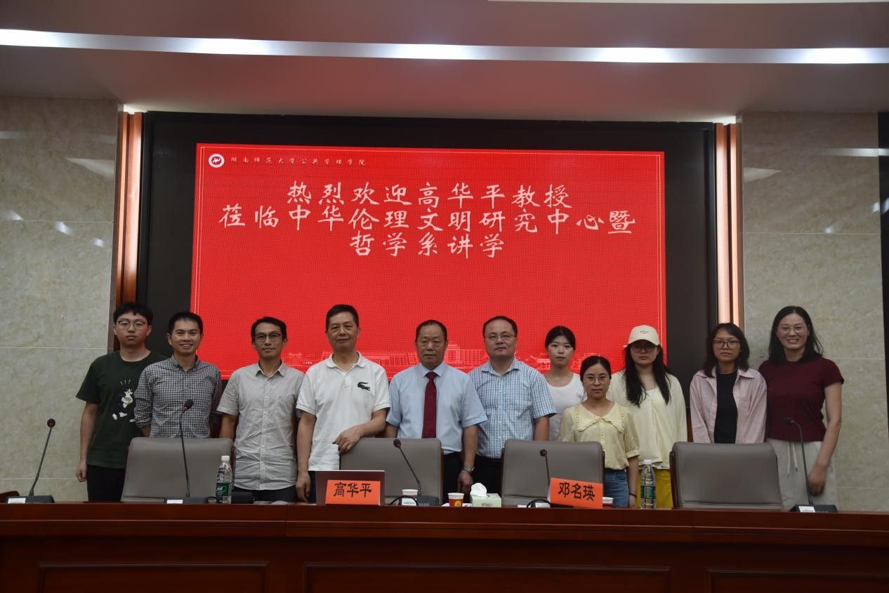 (通讯员 封啸)6月20日上午,暨南大学二级教授、校学术委员会委员,文学院中国语言文学博士生导师、哲学学科学术带头人,中国墨子学会副会长、中华孔子学会暨老子学会理事高华平教授应邀莅临湖南师范大学哲学系,作题为“综合的学问:先秦诸子研究的方法与路径”的学术讲座。本次讲座由我院哲学系与我校教育部人文社会科学重点研究基地——湖南师范大学中华伦理文明研究中心共同主办。哲学系邓名瑛教授主持讲座,萧平副教授、邹啸宇副教授、彭婷讲师以及哲学系三十余名博士生、硕士生参加了此次讲座。