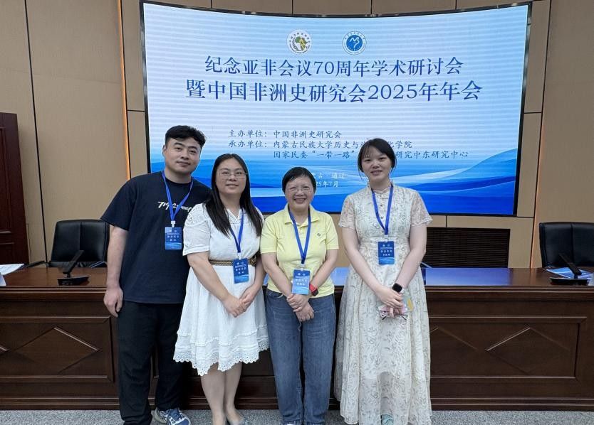 (通讯员:韩杰)2025年7月17日至20日,由中国中东学会、内蒙古民族大学主办,内蒙古民族大学历史与旅游文化学院等单位联合承办的“埃及与世界反法西斯战争胜利80周年”学术研讨会暨第五届“埃及历史与埃及发展”高层学术论坛和由中国非洲史研究会主办,内蒙古民族大学历史与旅游文化学院等单位联合承办的“纪念亚非会议70周年学术研讨会暨中国非洲史研究会2025年年会”先后在通辽市举行。我校公共管理学院非洲研究中心陈晓红教授、颜琳副教授、罗姝瑶讲师和韩杰博士研究生参加了系列会议,并分别就非洲史教学、埃及外交关系、非洲国际关系和非洲历史研究进行了点评和发言,并与来自中国社会科学院、北京大学、华东师范大学、云南大学、湘潭大学、上海师范大学、上海外国语大学等100多位同行专家学者进行了深入的学术交流。