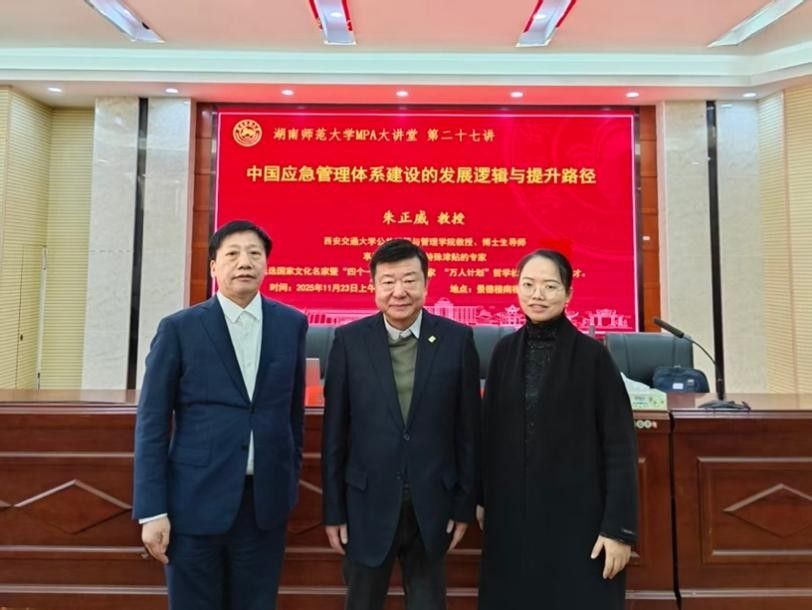 (通讯员:王迪娜)11月23日上午,湖南师范大学MPA大讲堂第二十七讲在景德楼南栋四楼报告厅成功举办。西安交通大学公共政策与管理学院朱正威教授应邀为我院师生作题为“中国应急管理体系建设的发展逻辑与提升路径”的学术讲座。讲座由湖南师范大学中国乡村振兴研究院院长陈文胜教授主持,学院部分教师及MPA学生、相关专业的研究生和本科生参与本次讲座。