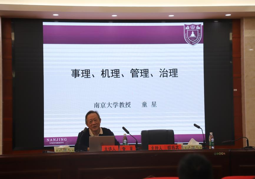 胡扬名教授对本次讲座进行总结,认为童星教授讲座的内容不仅蕴含着深刻的理论意蕴,而且具有系统的逻辑联结和观点呈现。童星教授从事理的本质规律、到机理的逻辑拆解,再到管理和治理的升华进阶,既是对基本概念异同的追根溯源,也对看问题、解问题提供富有哲理的思维框架,为在场师生们呈现了一场“致广大而尽精微”的思想盛宴。