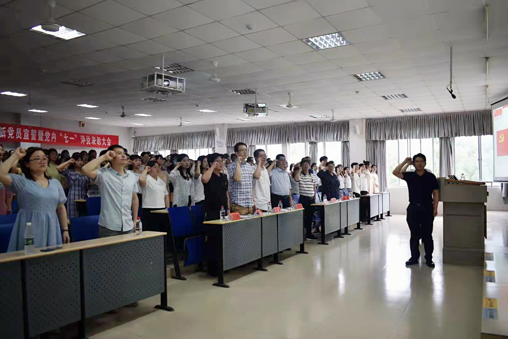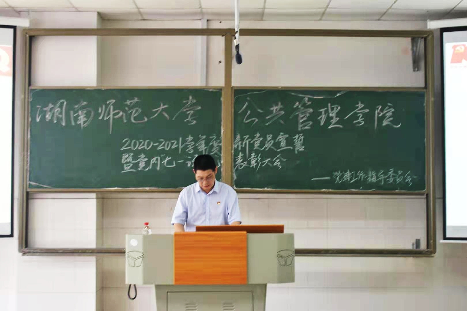 (通讯员 李婧源 钟林涛 赵芸凰)2021年6月10日,公共管理学院在景德楼304教室召开庆祝建党一百周年2020-2021学年度新党员宣誓暨党内“七一”评优表彰大会。会议由学院党委办公室主任李江主持。