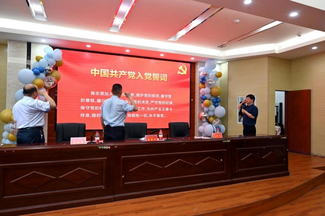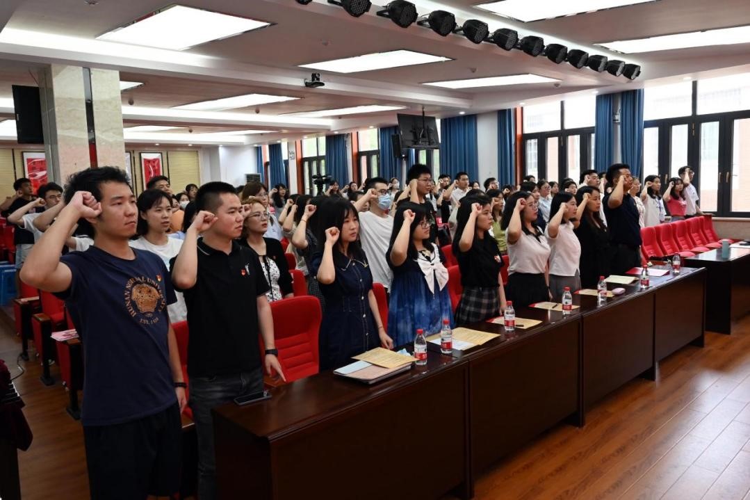 院长毛新志带领全体师生党员重温入党誓词。通过重温入党誓词让党员同志们时刻牢记入党初心、时刻牢记党员身份,把入党誓词落实到行动上,用誓言书写初心使命、用行动践行使命担当,切实做到为党分忧、为国尽责、为民奉献。