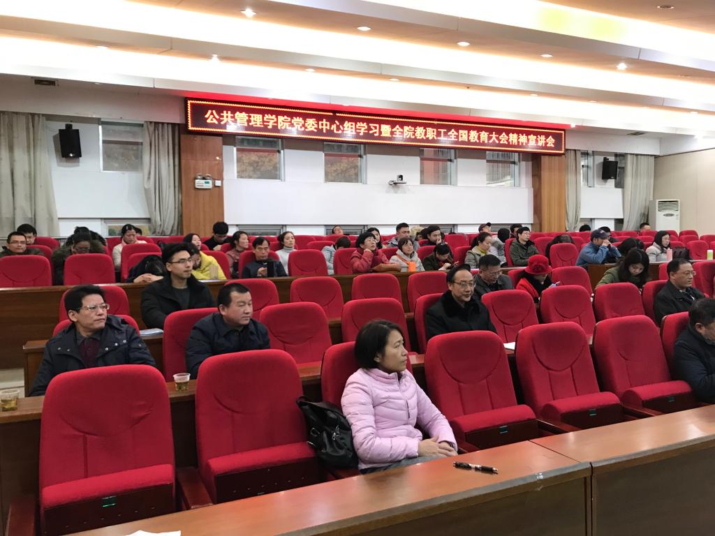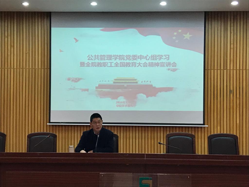 12月7日下午,公共管理学院党委中心组学习暨全国教育大会精神宣讲会在三楼学术报告厅举行,党委书记余望成面向全院教职工进行全国教育大会精神的宣讲。