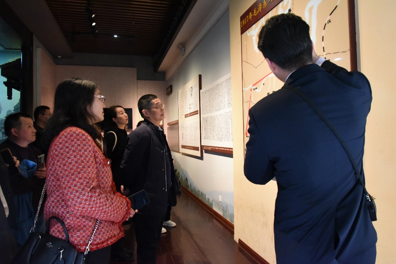 我院一行在纪念馆讲解员的带领下有序参观了城南书院、大礼堂、第八班教室和第八班寝室等红色景点,聆听了“革命理想映初心”“红井甘甜映初心”“实事求是践初心”党史故事宣讲。师生党员们听得用心,看得仔细,重温了那段激动人心的岁月,并更加深刻地感受到了毛泽东同志立大志、明大德、成大才、担大任的崇高精神以及老一辈无产阶级革命家舍生忘死为人民谋幸福、为民族谋复兴的初心和使命。
