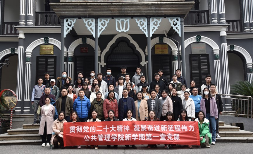 (通讯员明千千)3月2日下午,学院党委组织行政教工党支部、哲学系教工党支部、社会学系教工党支部与党建指导委员会、各学生支部、研究生委员会和团总支委员会、本科生主席团及各年级委共赴毛泽东与第一师范纪念馆(湖南省立第一师范学校旧址)开展了主题为“贯彻党的二十大精神,凝聚奋进新征程伟力”的新学期第一堂党课。