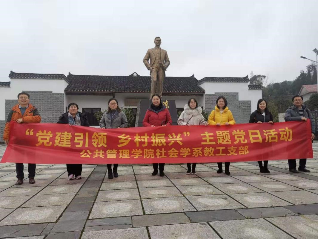 2020年11月27日,湖南师范大学公共管理学院社会学系教工支部赴往浏阳市镇头镇开展“党建引领,乡村振兴”的主题党日活动,活动先瞻仰陈昌烈士故居、参观了土桥村油茶种植示范基地、油茶小镇园区油坊、浏阳艺术科技博物馆、浏阳环保科技园区,后与镇头镇政府、民政局与乡镇社工站的负责人座谈,了解乡镇社会工作开展情况。党员们都纷纷表示通过此次党日活动深刻体会了前辈的革命精神,增强了党性修养,同时作为社会学专业教师,对乡村振兴、乡村社会与生活有更深刻的了解,收获巨大。