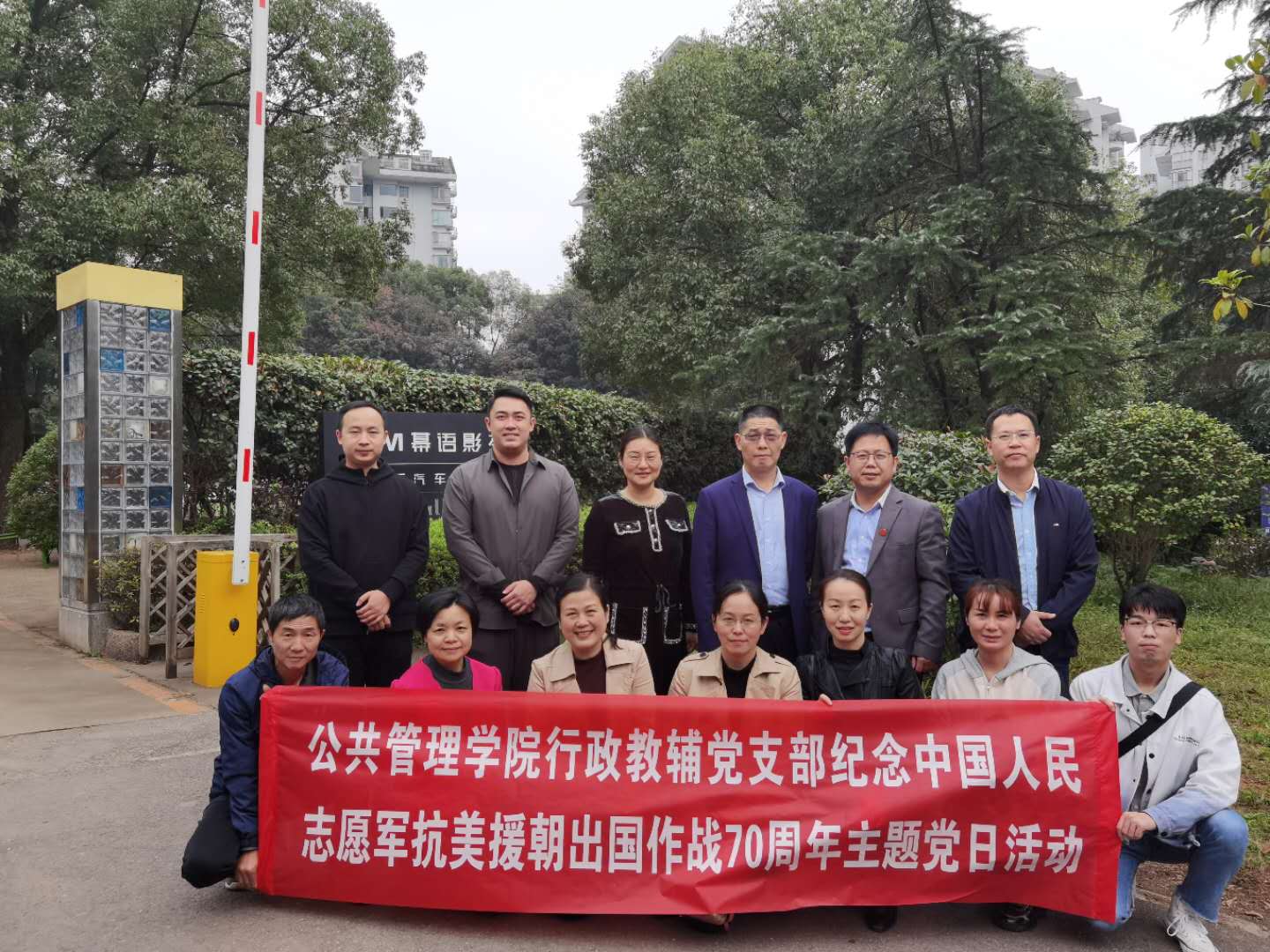 为深入贯彻落实习近平总书记关于“铭记英雄、崇尚英雄、捍卫英雄、学习英雄、关爱英雄”的重要论述,11月6日下午,公共管理学院行政教辅党支部组织全体党员开展“纪念中国人民志愿军抗美援朝出国作战70周年”主题党日活动,活动观看了红色历史影片《金刚川》。
