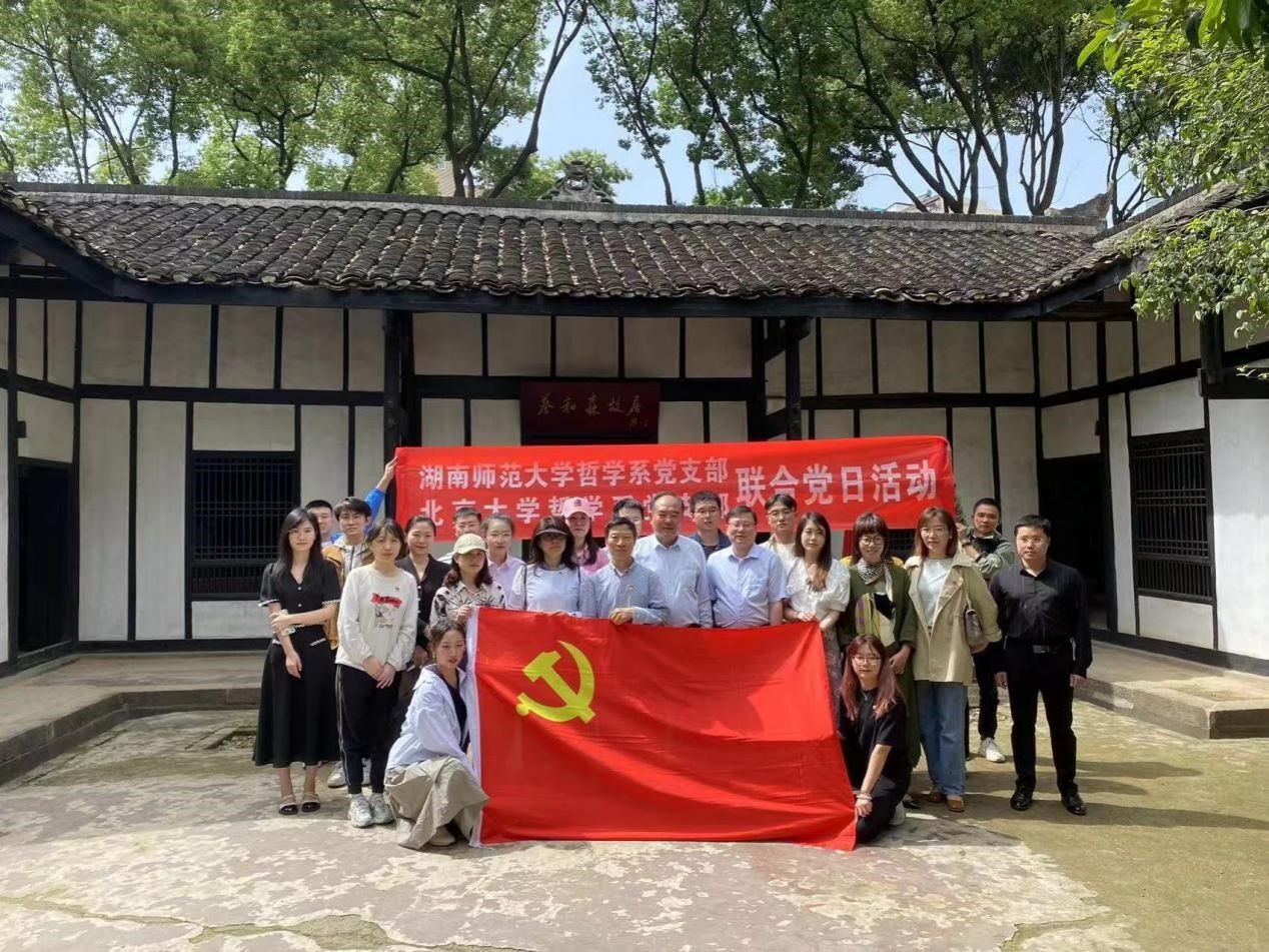 (通讯员:李建磊)为深入学习宣传贯彻党的二十大精神,4月15日,湖南师范大学公共管理学院哲学系师生党支部与北京大学哲学系师生党支部在长沙市新民学会旧址举行了一场别开生面的联合党日活动。此次活动主题为“探寻党建先锋,学习五四精神”,旨在教育引导党员干部凝心铸魂,充分发挥党员干部先锋模范作用,以党建促发展。活动由湖南师范大学道德文化研究院院长向玉乔教授和北京大学哲学系党支部书记张秀成教授带队。活动现场,来自两所高校哲学系党支部的党员同志们共同参观新民学会旧址,重温革命先烈们的光辉事迹。
