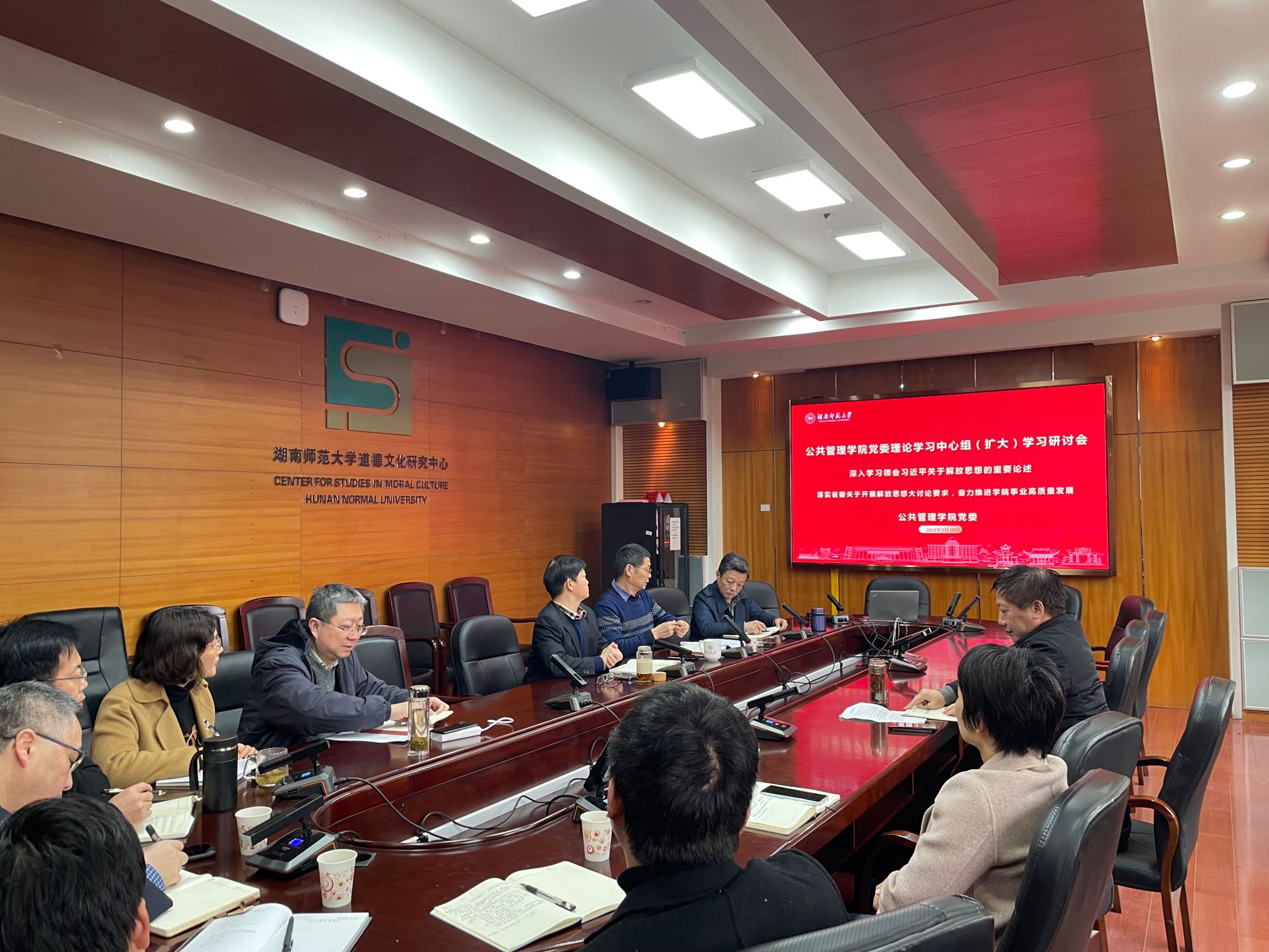 会议就如何落实省委关于开展解放思想大讨论要求和刘仲华校长来院调研的指示精神,重点围绕哲学世界一流培育学科建设、教育部人文社会科学重点研究基地“中华伦理文明研究中心”建设、高端智库建设和政治学“十四五”省级重点学科建设等领域的系列问题进行全面梳理并展开热烈讨论。