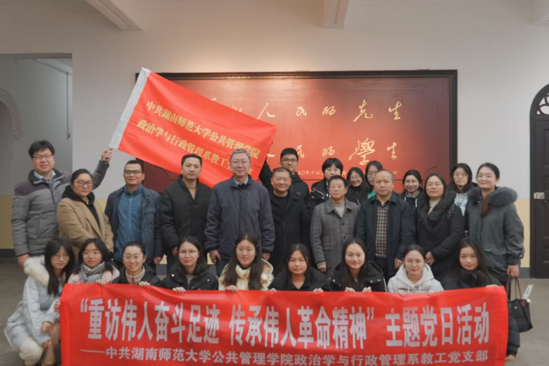 (通讯员:黄思雨)为持续深化对党的二十大和二十届三中全会精神的理解贯彻,进一步引导党员同志增强党性意识、提升党性修养,提高党员素质、增强支部凝聚力和战斗力,确保党员在思想上、政治上、行动上与党中央保持高度一致,2024年12月26日,我院政治学与行政管理系教工党支部开展了“重访伟人奋斗足迹,传承伟人革命精神”党建活动。