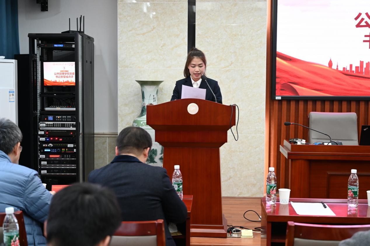 (通讯员:范玉聪)3月20日下午,公共管理学院党委在博后楼303学术讲堂召开2024年度基层党支部书记“双述双评”现场述职评议大会。会议由学院本科生政治学与行政学党支部文雅琪同志主持。