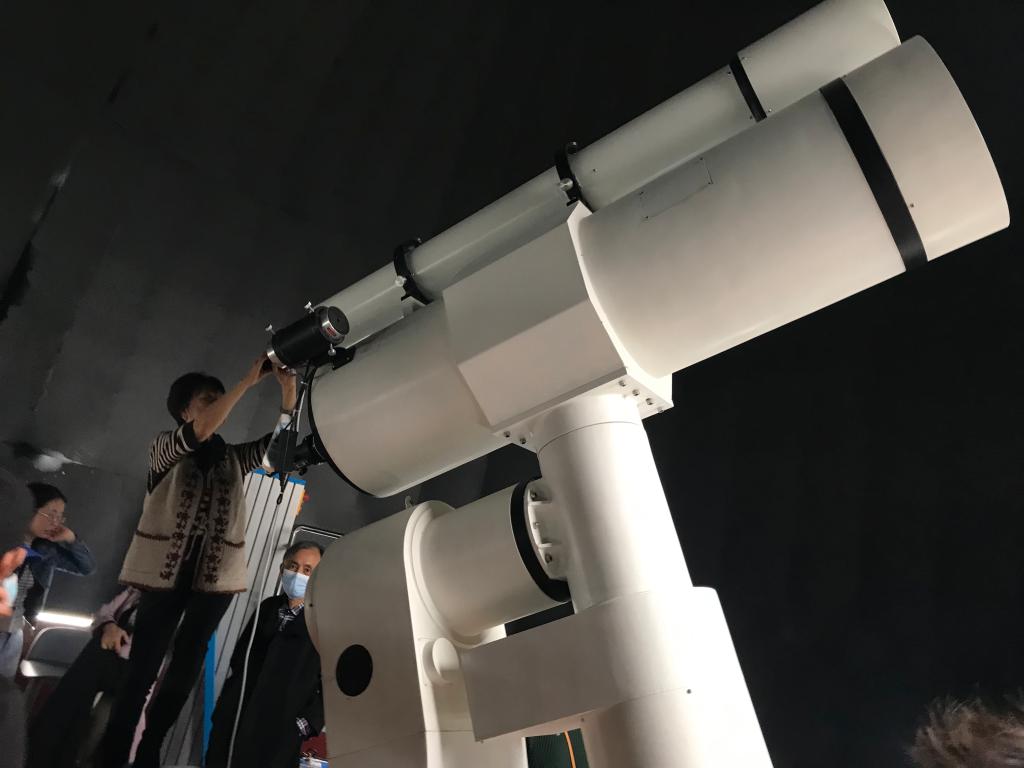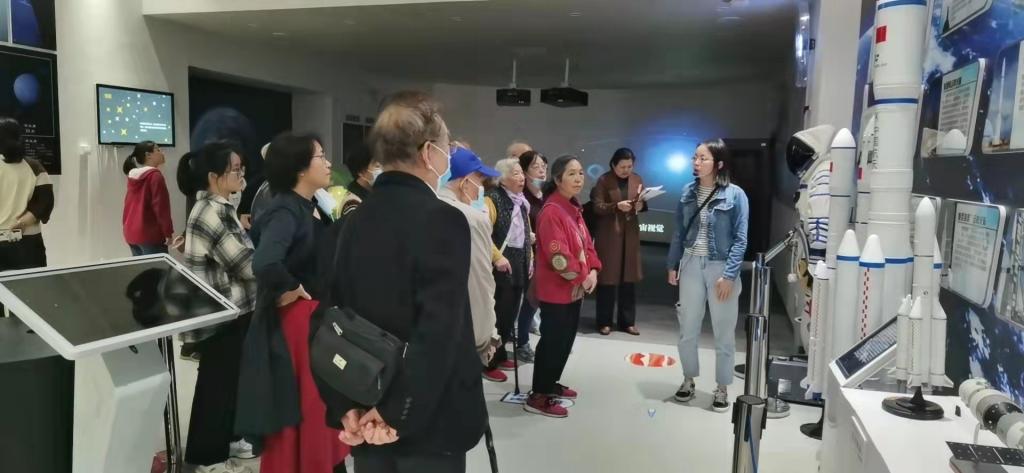 随后,大家又到天文馆进行了参观。讲解员介绍了我校天文馆的建设历史和天文馆建成的历史意义,然后带领老师参观了“太阳系与航天史”、“星云星系与宇宙简史”以及“天文学前沿与未解之谜”三个展厅。最后,诸多退休教师还体验了40公分折反式天文望远镜观测月球、行星等天体的活动。