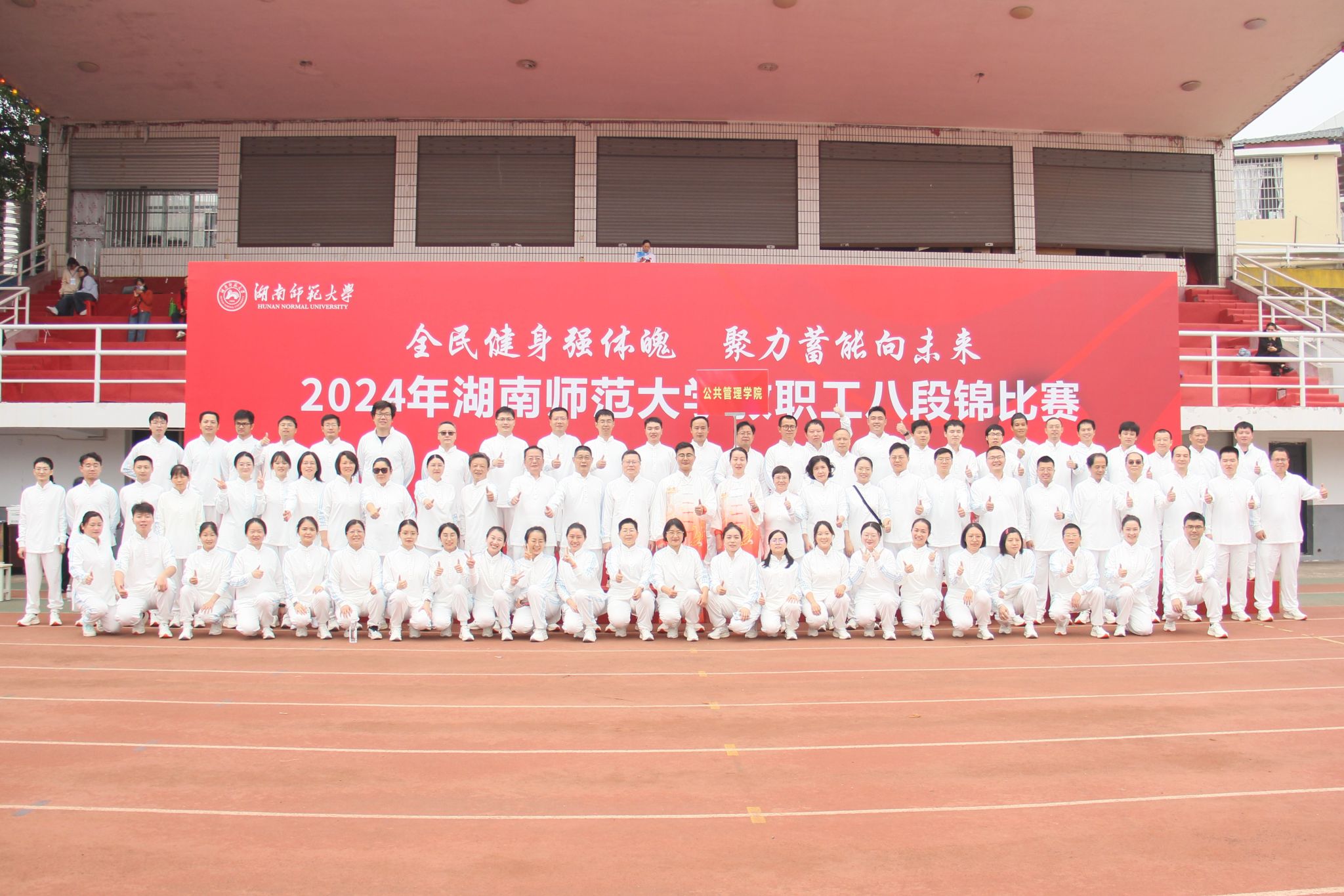 (通讯员:刘剑 康婕)为推广传统健身文化,增强教职工的身体素质,同时促进学院教职工之间的交流与团结,11月16日上午,2024年湖南师范大学教职工八段锦比赛在二里半田径场举行。公共管理学院(以下简称“公管院”)教职工参赛队伍以出色的表现和优良的团队精神在此次比赛中取得佳绩。