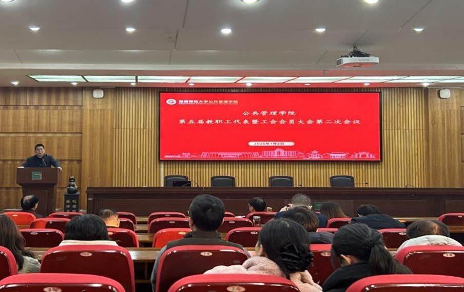 (通讯员:田佩灵)为深入学习贯彻习近平新时代中国特色社会主义思想,弘扬教育家精神,加强新时代高素质专业化教师队伍建设,确保立德树人根本任务和学院各项工作的顺利推进,我院于2025年1月2日在景德楼三楼报告厅召开党委理论学习中心组暨教职工政治理论学习会、学院第五届教职工代表(工会会员)大会第二次会议。会议由党委书记余望成主持;学院全体党委理论学习中心组成员和全院教职工参加会议。