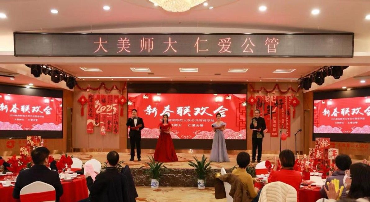 (通讯员 陈紫琪)金蛇献瑞,春满麓山。1月12日下午,湖南师范大学公共管理学院“大美师大仁爱公管”教职工新春联欢会在通程麓山国际大酒店湘江宴会厅热闹开场。公共管理学院120余名在职教职工与离退休教职工齐聚一堂,共迎新春。