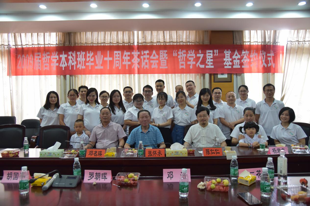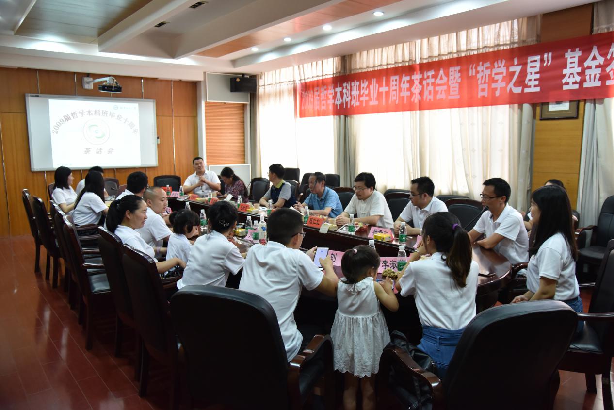 8月10日下午,2009届哲学本科班毕业十周年返校座谈会在学院415会议室举行,院长毛新志教授,任课老师张怀承、邓名瑛、陈仁仁教授,湖南师范大学教育基金会副秘书长刘芸玲老师,以及09届哲学本科班16位同学参加了此次座谈会。座谈会由该班班长申强杰主持。