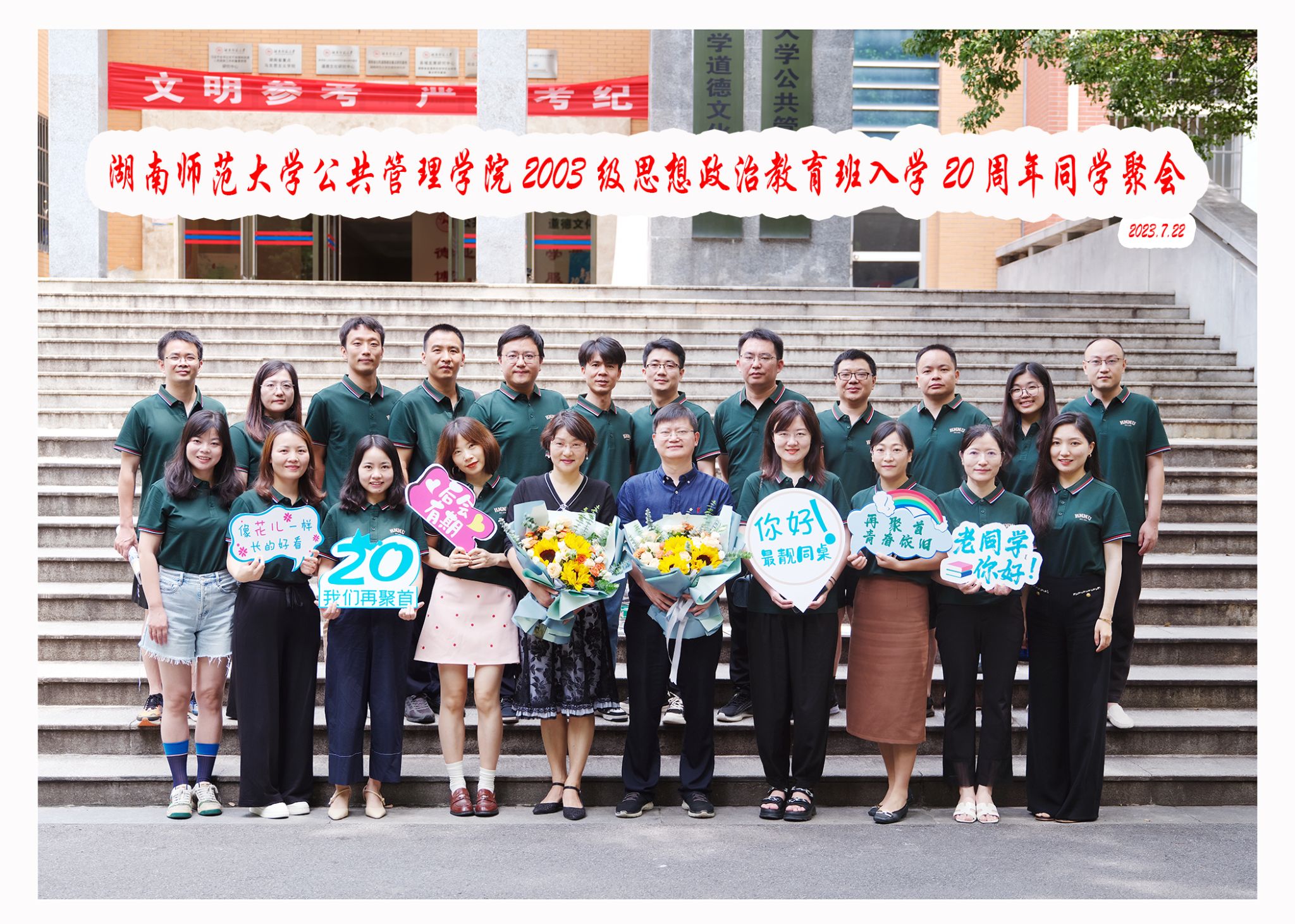 为迎接2003届校友回母校聚会,公共管理学院精心策划了丰富多彩的系列活动。多年未见的老同学再到食堂吃一顿饭,品味曾经熟悉的味道;再到球馆打一场球,在酣畅淋漓中迸发青春的热血沸腾;再到校史馆、博物馆和熟悉的校园走一走,见证湖师大历史的印记;再开一场吐槽大会,笑谈当年三五趣事……一天的相聚,师生们度过了一段难忘的时光。20年,是岁月如歌,也是青春回首。但只要和同学在一起,就永远年轻,再过20年,这份情谊依然不会变。