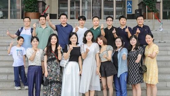 毛新志院长、孙雯波书记与校友们在学院门口合影留念