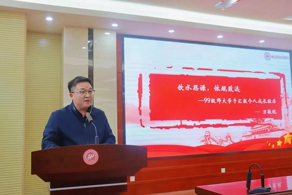 “饮水思源,依规致远”,这是万敏锐校长在第四届思源学生干部奖学金颁奖仪式暨“景德思源忆芳华,青春献礼二十大”校友景德论坛上作为99级校友进行演讲、分享个人成长经验时的主题。“饮水思源”,他不忘来时坎坷,字里行间铭记母校恩德;“依规致远”,他踏过万山风霜,从容谈笑捧上成长经验。