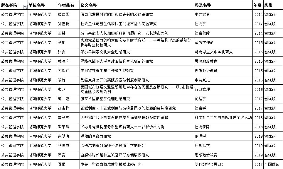 2014-2019年获省级优硕士学位论文名单