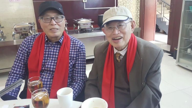 2019年1965级毕业50周年聚会时,唐凯麟教授与苏醒主任于红楼餐厅留影