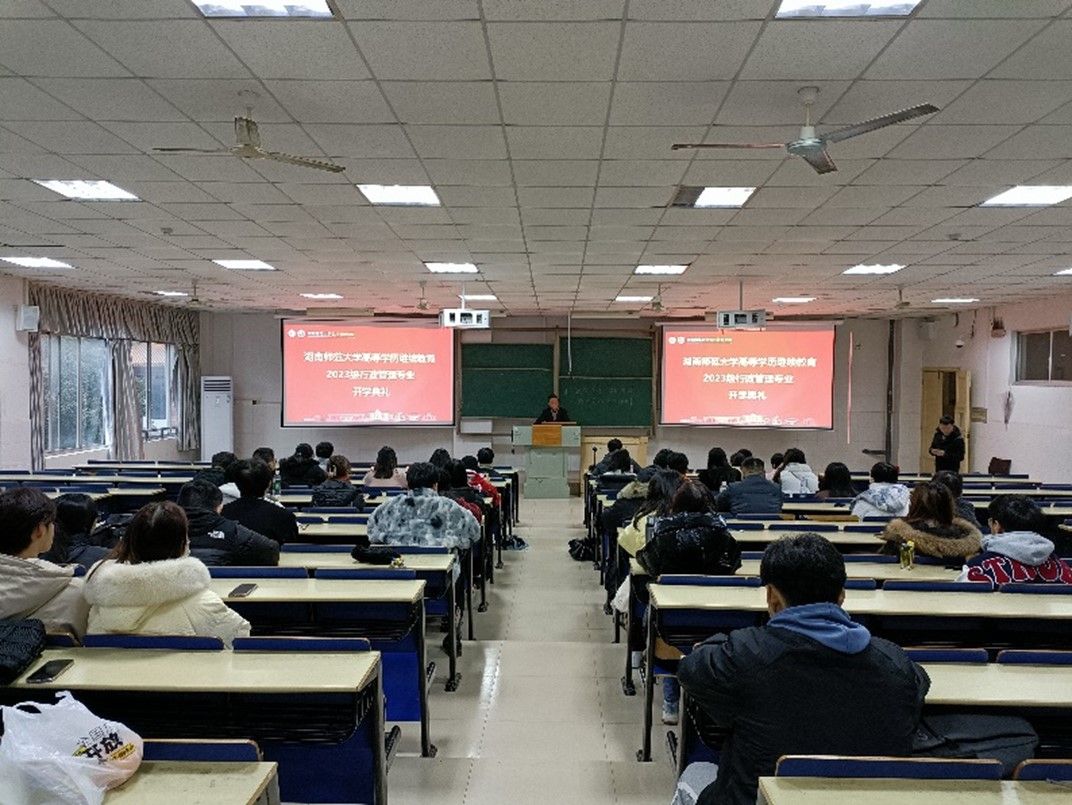 2024年1月20日上午,我院2023级行政管理专业(函授、专升本)第一次线下集中面授在景德楼南栋A204多媒体教室顺利开启。学院举行了简短而又隆重的开学典礼。公共管理学院副院长胡雪松出席了开学典礼。典礼由成教办副主任邹水平主持。
