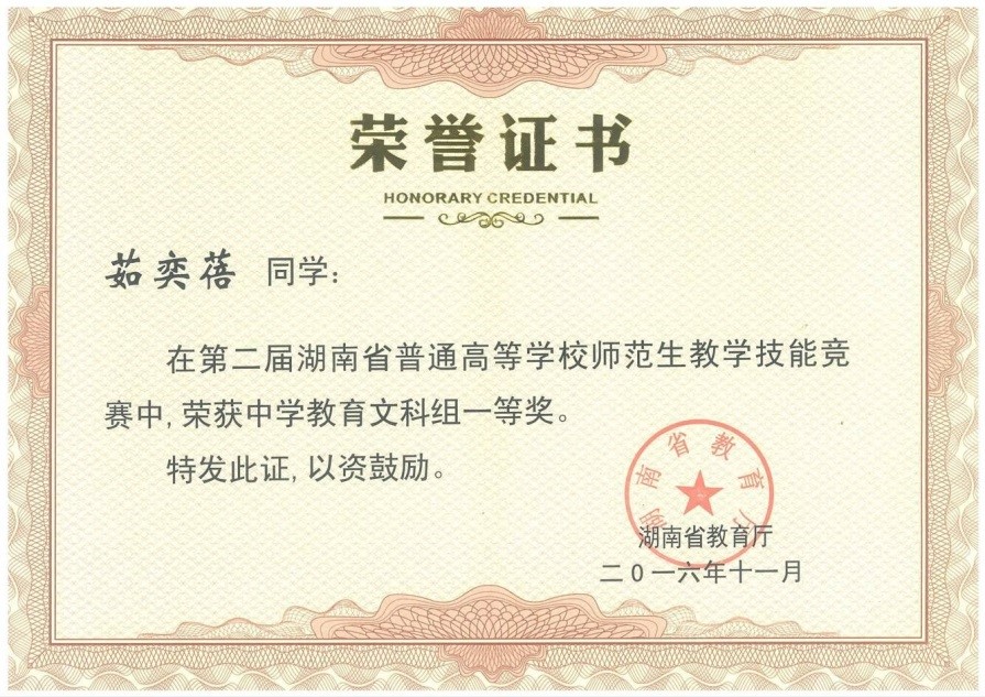 该专业实践教学改革卓有成效。注重提升学生的综合素质和实践能力,探索形成了四年一贯的“前移后拓”实践教学体系,在时间上贯通、空间上辐射师范教育的全过程。构建起了“校校合作”的协同育人机制,通过“中学导师制”,与湖南省政治名师工作室,湖南省基础教育“四大名校”等建立起了长期稳定的合作关系,共同服务学生专业成长。近年来该专业学生在“华文杯”全国师范生教学技能大赛中屡屡斩获最高奖项,连续多年蝉联湖南省师范生教学技能竞赛文科组一等奖。