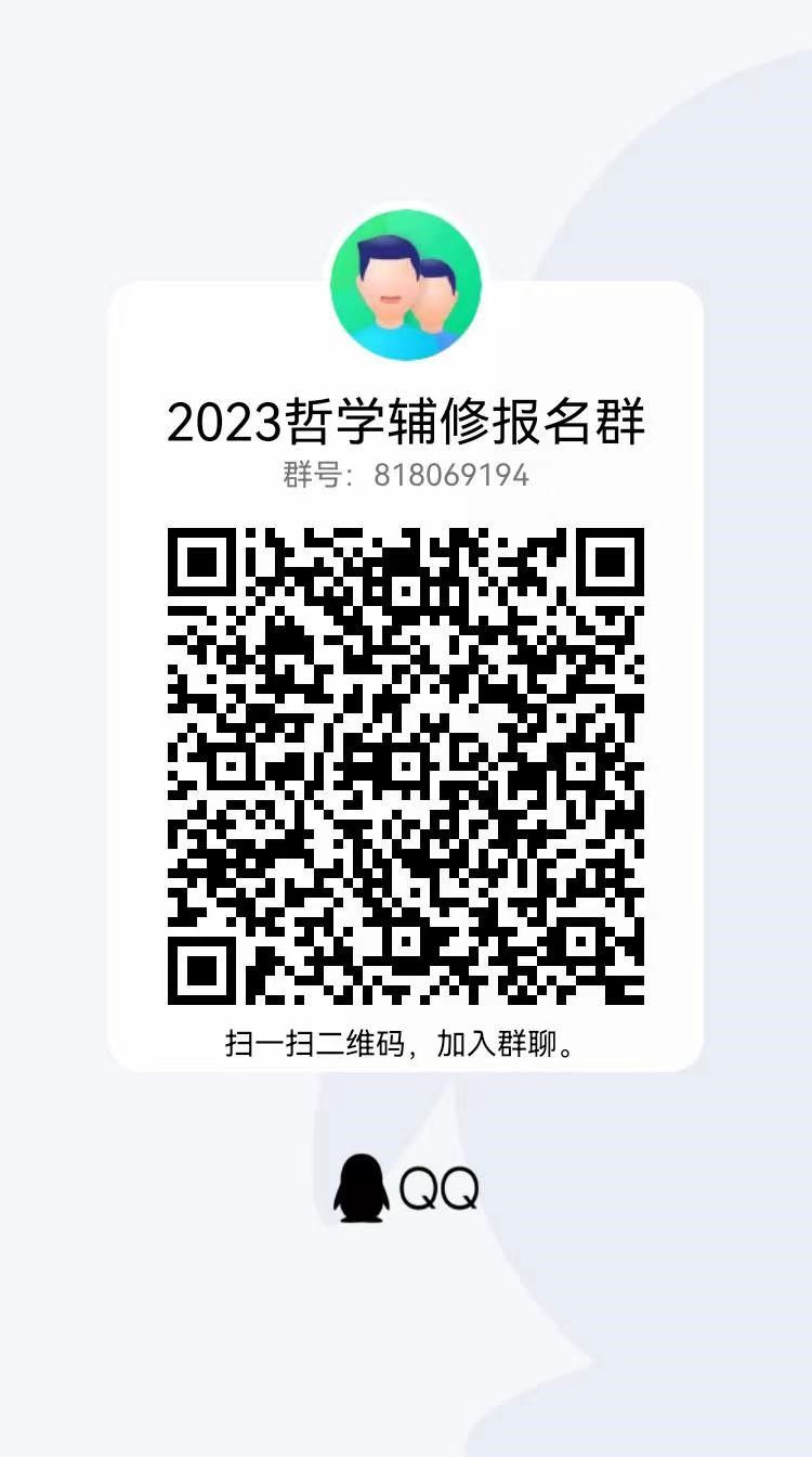线上咨询:为保证同学们及时获取录取、缴费等通知,请加入“2023哲学辅修报名群”(QQ号:818069194),后续通知将在群内发布,也可在群内向老师咨询问题。