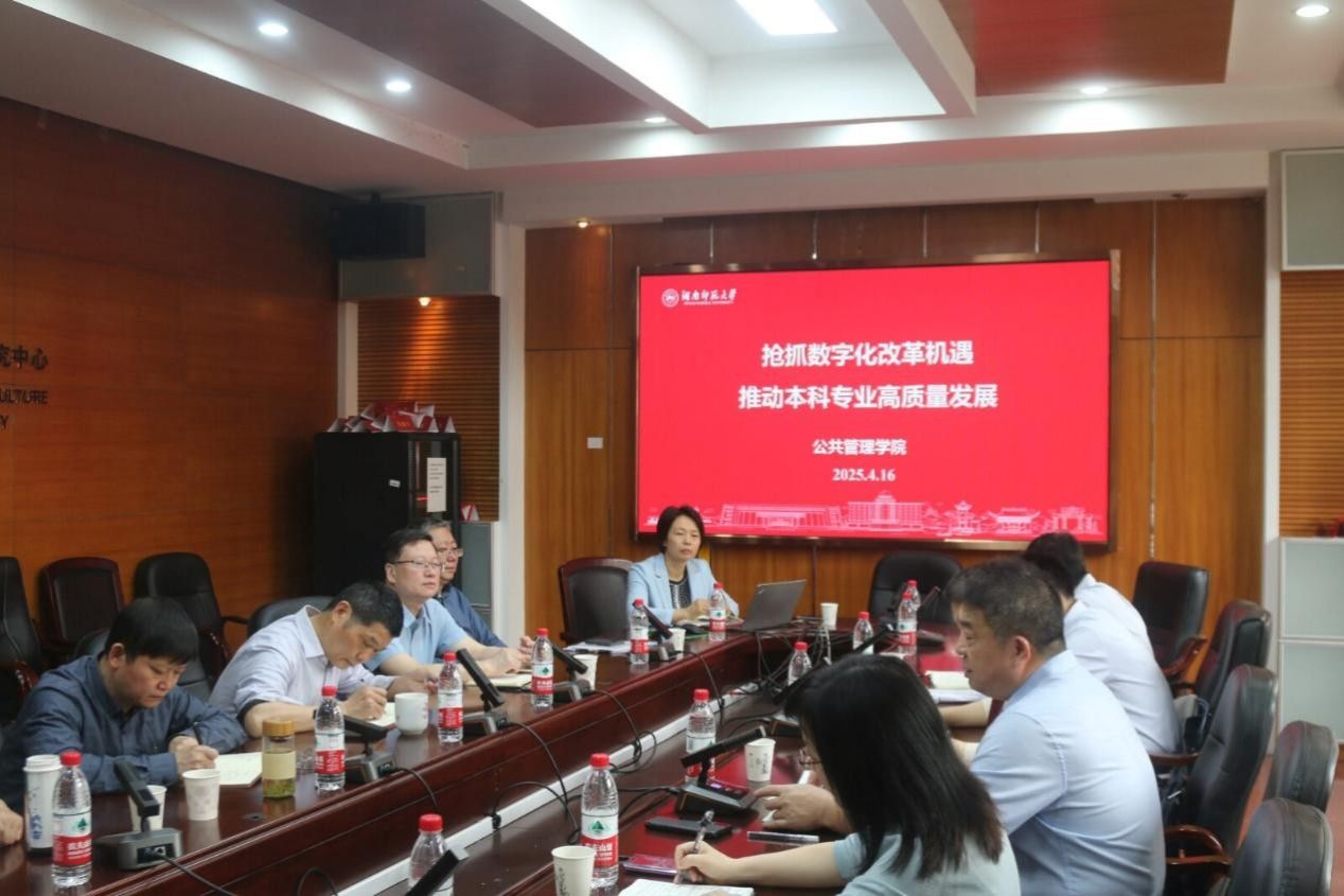 谢资清副校长对公管院历年在办学成果与人才培养等方面给予充分肯定,并对公管院的学科发展和人才培育寄予厚望。她指出应当落实党的二十届三中全会关于学科改革的政策纲领,按照教育部及省教育厅对于高校学科建设要求,在改革中凸显学科优化的重要性。此外,她提出公管院需要明确学科建设重点,精简学科专业布局,推动本科专业提质升级。在专业建设上,要对标国家一流专业建设标准,强化课程体系创新与教学模式改革,打造具有竞争力的专业集群。同时,还应结合教师考核调研,提升师资队伍整体素养,建设动态评估机制,达到学校资源与专业教学相互支撑的良性循环。最后,谢资清副校长表示,在当今科学技术迅速发展的大背景之下,面对新一轮科技革命,公管院应担当发展责任,与时俱进,推陈出新,顺应时代发展潮流,不断将学院综合能力优化升级,为学校整体发展赋能。