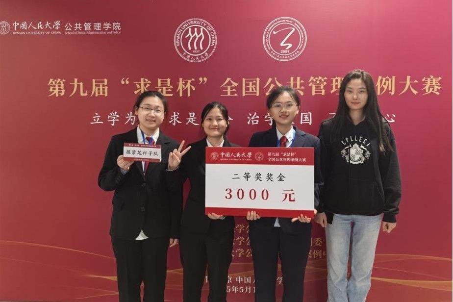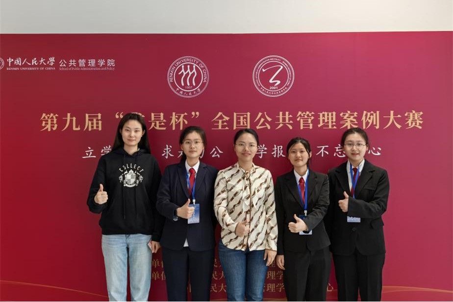 (通讯员 陈茜 刘子悦 杨昊)5月18日,第九届“求是杯”全国公共管理案例大赛在中国人民大学通州校区成功举办,由湖南师范大学政治学与行政管理系副教授刘茜指导,本科生陈茜、刘子悦、杨昊、贺文卓组成的握紧笔杆子队,在与来自北京大学、中国人民大学、华东师范大学等高校的16支队伍的激烈角逐中,综合得分名列前茅,荣获本次大赛二等奖。