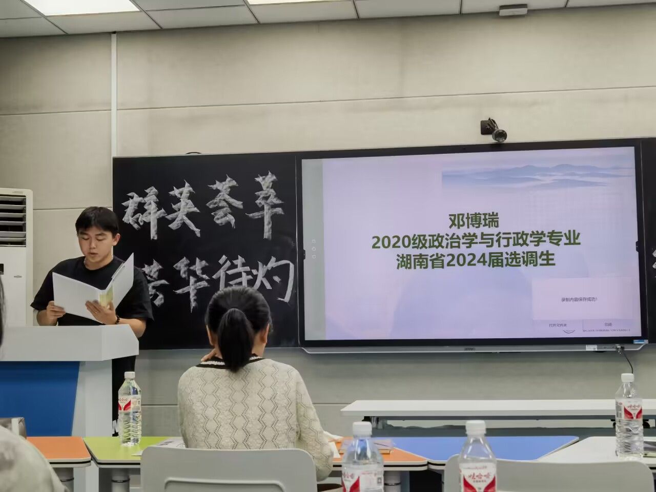 (通讯员:徐慧宇 刘子润)为了指导同学们规划未来的职业生涯,2024年5月21日下午,21级行管班在景德楼209举行经验交流会。此次活动邀请了行管班班导师彭小玲,2021级辅导员易晓,以及黄家荣、曾雨琪、邓博瑞、李楠、曾庆建、刘婉莹等在深造、就业、考公各个领域成功上岸的学长学姐们为我们分享他们的成功经验与心得。