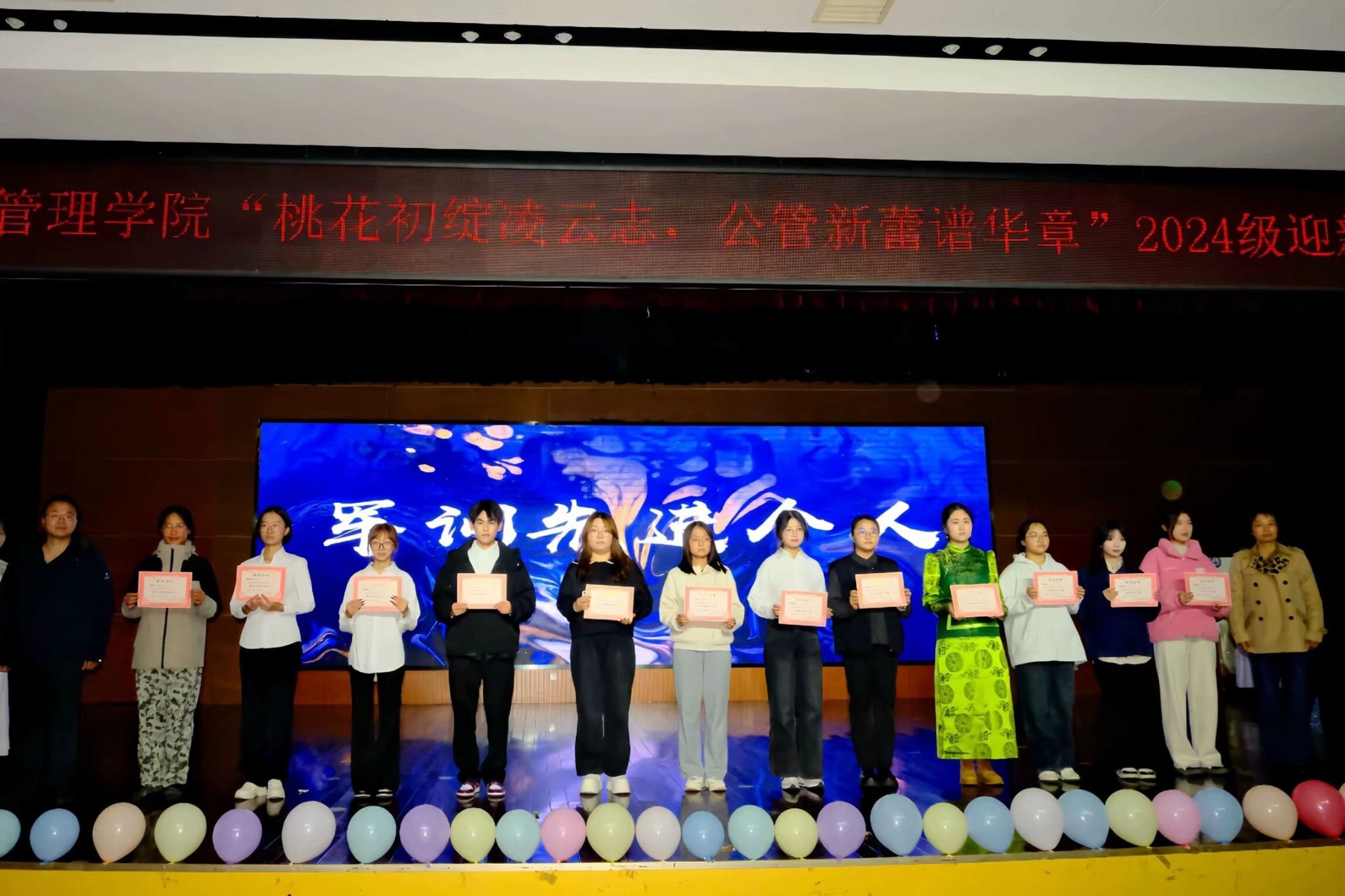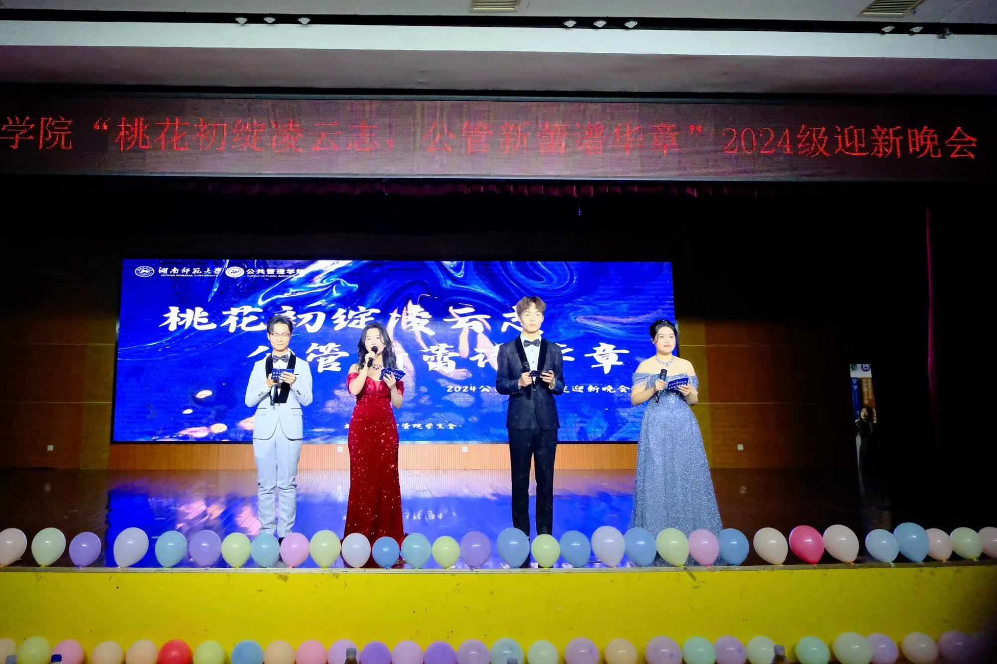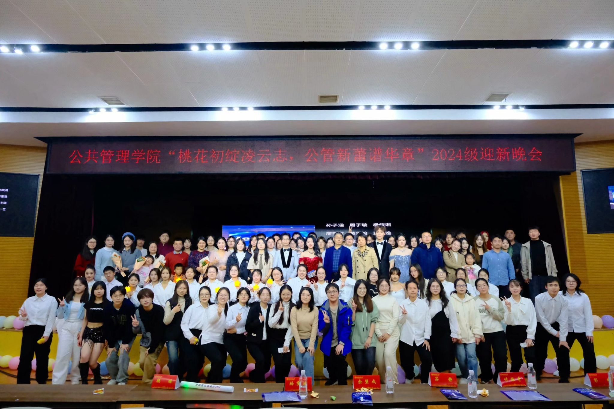 (通讯员 刘剑 康婕)为丰富同学们的校园文化生活,增强24级本科生对学院的归属感和认同感,12月1日晚,公共管理学院(以下简称“公管院”)“桃花初绽凌云志,公管新蕾谱华章”主题迎新晚会在励德楼江边活动中心举行。公管院党委书记余望成,副院长苏静,党委副书记孙雯波,政治学与行政管理系系主任付振奇、老师颜琳,哲学系老师王大封、肖柯、彭婷,学工办主任林哲旭,辅导员申峰铭、兰绍娴、夏瑞霞,19级哲学校友张思为以及公管院24级本科生参与此次晚会。