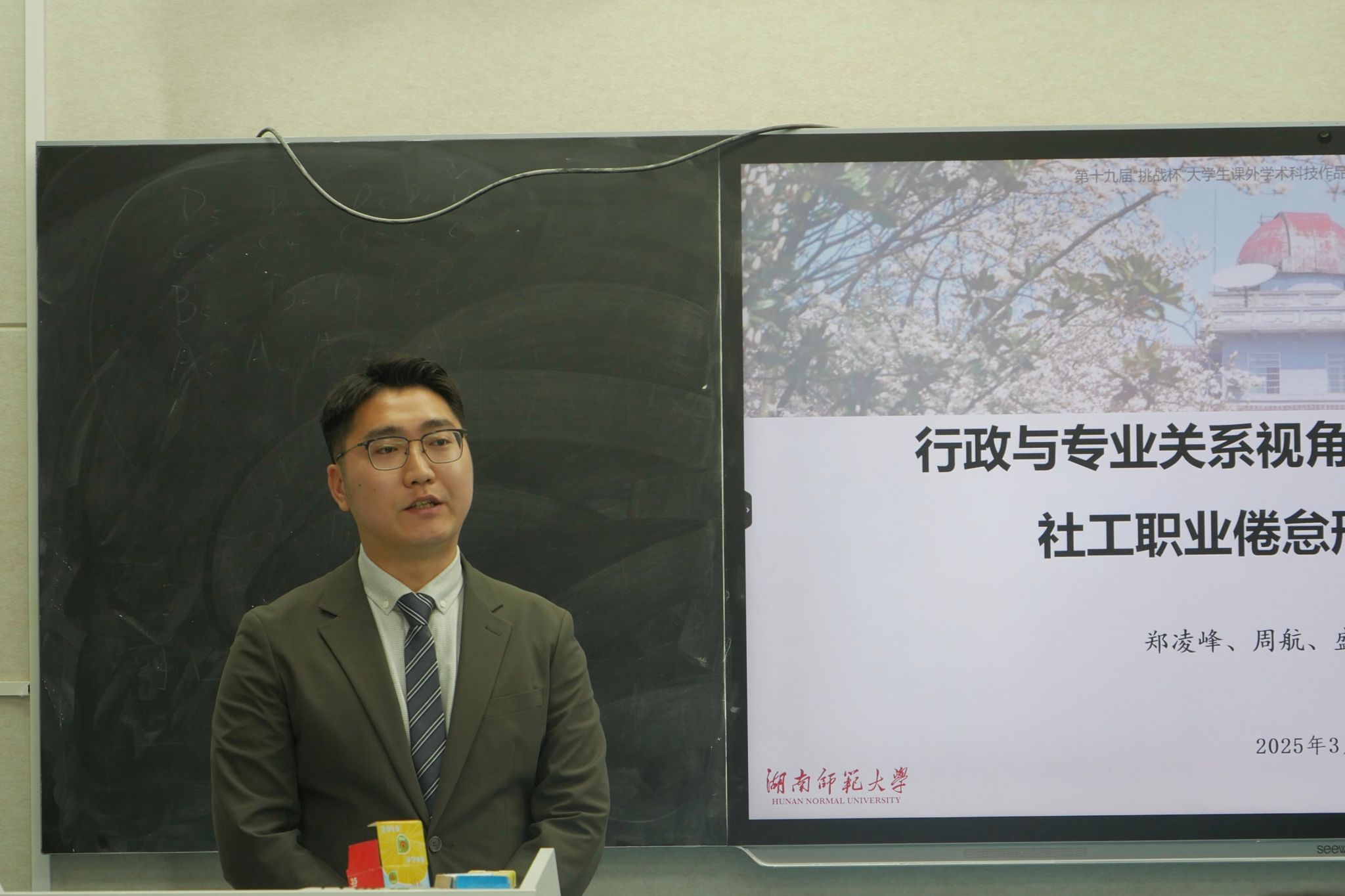 (通讯员 于汶 周博文 申祥珍)为促进青年创新人才成长、深化高校素质教育,3月13日下午,公共管理学院(以下简称“公管院”)在景德楼中栋三楼报告厅和智慧教室209分赛场,举办了第十九届“挑战杯”大学生课外学术科技作品竞赛院级选拔赛。公管院副院长苏静,院党委副书记孙雯波,各系专家胡扬名、付振奇、翟理铜、王欣担任评委,11支学生团队参与现场展示。