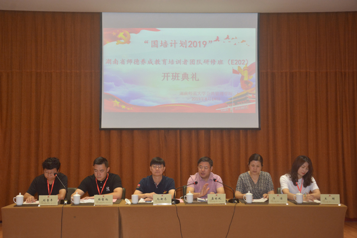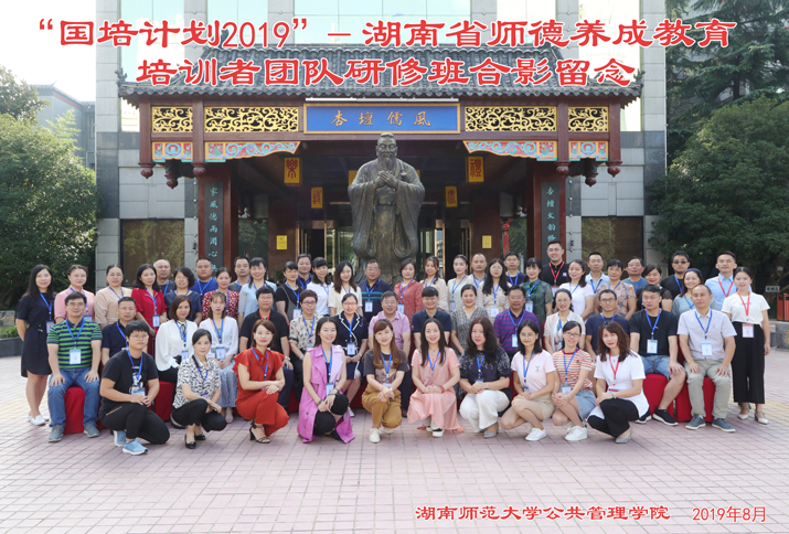 8月14日上午,由湖南师范大学公共管理学院承办的“国培计划2019——湖南省师德养成教育培训者团队研修班”在山东曲阜顺利开班。湖南师范大学公共管理学院院长毛新志教授、湖南省中小学教师发展中心师德科科长龚明斌、公共管理学院副院长邝洁、院长助理刘雪丰教授、公共管理学院培训中心主任王群、研修班班主任林哲旭出席开班典礼。开班典礼由刘雪丰教授主持。
