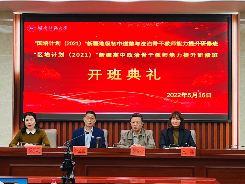 2022年5月16日上午9:30,“国培计划(2021)”新疆地级初中道德与法治骨干教师能力提升研修班与“区培计划(2021)”新疆高中政治骨干教师能力提升研修班在师训宝研修平台举行线上开班典礼。我院党委书记余望成、副院长胡雪松、院培训中心主任王群、政治学系副主任伍屏芝出席了典礼,典礼由伍屏芝主持。