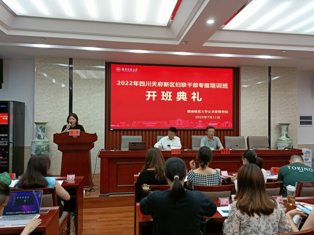 2022年7月11日上午8:30,2022年四川天府新区妇联干部专题培训班在我院博后楼三楼报告厅举行了开学典礼。四川天府新区“两新”工委专职副书记吴浩清、我院副院长胡雪松出席了典礼。典礼由培训中心刘慧主持。