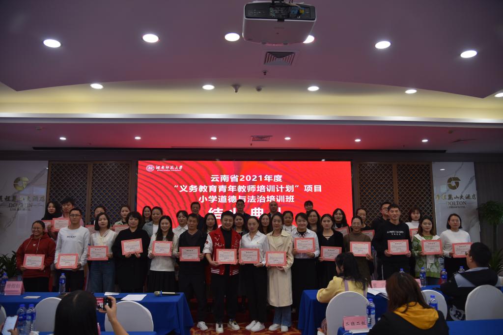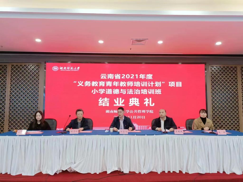 11月20日,由我院承办的“国培计划2021”云南省义务教育青年教师培训计划项目小学道德与法治培训班结业典礼在通程麓山宾馆二楼湘汇厅圆满举行。我院党委书记余望成、副院长胡雪松、李超民、培训中心主任王群出席了典礼。结业典礼由王欣主持。