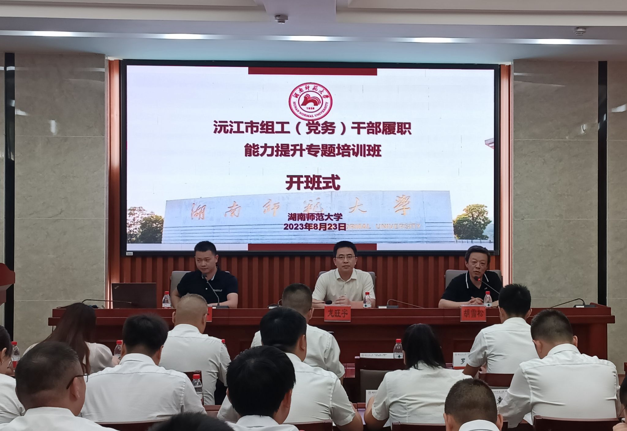 8月23日下午14:00,由沅江市委组织部主办,湖南师范大学公共管理学院承办的沅江市组工(党务)干部履职能力提升专题培训班开班典礼在我院博后楼303报告厅顺利举行。沅江市委常委、组织部部长龙旺宇、我院副院长胡雪松出席了典礼。典礼由我院培训中心教师邹水平主持。