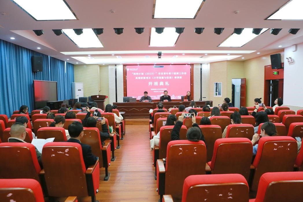 2023年11月28日上午,湖南省市县青年骨干教师工作坊高端研修项目小学道德与法治培训班(A0014-4)开班典礼在我院博后楼四楼报告厅顺利举行。我院副院长胡雪松、冷水江市中连乡中心小学党支部书记刘红霞出席了本次典礼。典礼由我院培训中心主任邹水平主持。