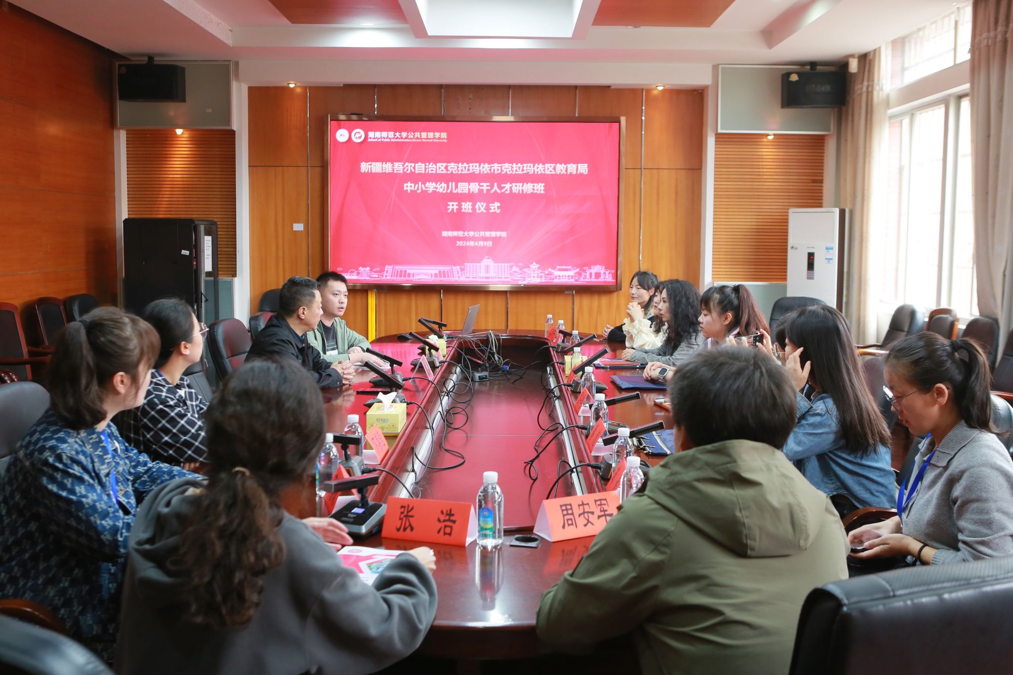 4月9日上午9:30,由新疆克拉玛依市克拉玛依区教育局主办、我院承办的新疆克拉玛依市克拉玛依区中小学幼儿园骨干人才研修班开班仪式在我院415学术报告厅顺利举行。我院副院长胡雪松出席仪式,仪式由我院培训中心主任邹水平老师主持。